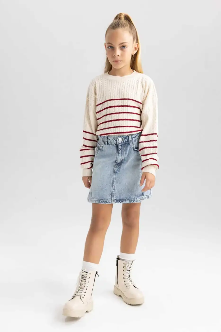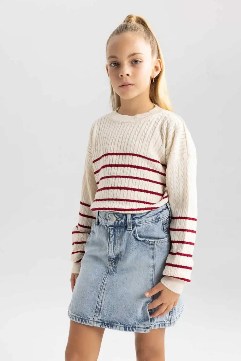 DeFacto Qiz Bolalar uchun Regular Fit Kremli Yoqa Ko'ylagi, chiziqli yumshoq triko to'qimasi, kremli yoqa, uzun yengli, regular fit modeli bilan qish faslida sizning uslubingizni aks ettiradigan ajoyib model va iliq ushlab turadigan to'qimasi bilan shim va yubkalaringiz bilan birlashtirasiz.