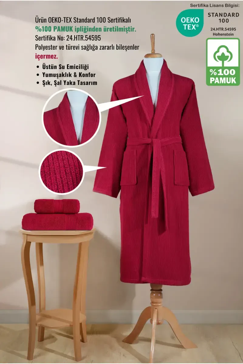 Chiziqli xalat to'plami, vanna so'ngidagi qulayligingizni va nafisligingizni old planda tutadigan maxsus dizaynga ega. 100% paxtadan ishlab chiqarilgan ushbu to'plam, teringizga nozik teginadi va mukammal singdirish qobiliyatini taqdim etadi. Shayalka xalatning qulay kesimi, harakat erkinligingizni cheklamagan holda issiq va xavfsiz his etishingizni ta'minlaydi. Bordo-bordo ranglarning uyg'unligi, hammomingizga nafis atmosfera qo'shadi, uzoq umr ko'radigan tuzilishi bilan yillar davomida foydalanishingiz mumkin bo'lgan mahsulotdir. To'plam ichida mavjud bo'lgan bosh sochig'i va vanna sochig'i, xalatingiz bilan mukammal uyg'unlikda va vanna tajribangizni to'ldiradi. Mahsulotimiz, OEKO-TEX® Standard 100 sertifikatiga ega bo'lib, inson salomatligiga zararli hech qanday modda o'z ichiga olmaganligi mustaqil laboratoriyalar tomonidan tasdiqlangan. Shu sababli, bemalol foydalanishingiz mumkin bo'lgan, ishonchli mahsulotdir. Chiziqli dizayni, zamonaviy va chiroyli ko'rinishni taqdim etar ekan, paxtaning tabiiy tuzilishi tufayli teringizda tirnash xususiyati keltirib chiqarmaydi. Xalatning shayalka yoqasi, bo'yningizni issiq tutadi va qo'shimcha qulaylikni ta'minlaydi. Bosh sochig'i, sochlaringizni tezda quritadi, vanna sochig'i esa tanangizni noziklik bilan o'rab oladi. Ushbu to'plam, faqat vanna so'ngidagi foydalanish uchun emas, balki, shuningdek, hovuz yoki spa kabi joylarda ham bemalol tanlashingiz mumkin bo'lgan ko'p qirrali mahsulotdir. O'zingizni erkalatmoq yoki seviklilaringizga maxsus sovg'a bermoq uchun ideal tanlovdir. Mahsulotning oson yuviladigan va quritiladigan xususiyati, foydalanish qulayligini ta'minlaydi. Yuvish ko'rsatmalariga rioya qilib, mahsulotning birinchi kundagi sifatini uzoq vaqt saqlab qolishingiz mumkin. Chiziqli xalat to'plami bilan vanna marosimingizni bir zavqqa aylantiring va kunning charchog'ini o'zingizdan chiqarib tashlang. Har bir detalida e'tibor va sifat mujassam bo'lgan ushbu to'plam, hammomingizning ajralmas bir qismiga aylanadi. Ustiga ustak, ushbu to'plam faqat qulayligingiz uchun emas, balki, shuningdek, atrof-muhitga g'amxo'rlik qiladigan tanlovdir. Barqaror paxta ishlab chiqarish usullari yordamida ishlab chiqarilgan bo'lib, tabiiy resurslarning muhofazasiga hissa qo'shadi. Chiziqli xalat to'plami, ham sizga, ham tabiatga qadrlaydigan bir tanlovdir. Vanna so'ngi o'zingizni tetik, xotirjam va erkalatilganga his etish uchun yana nimani kutyapsiz? Ushbu betakror to'plamga hoziroq buyurtma bering va hashamatdan rohatlaning. Unutmang, sifatli bir xalat to'plami faqat bir to'qimachilik mahsuloti emas, balki, shuningdek, o'zingizga qilgan bir sarmoyangizdir.