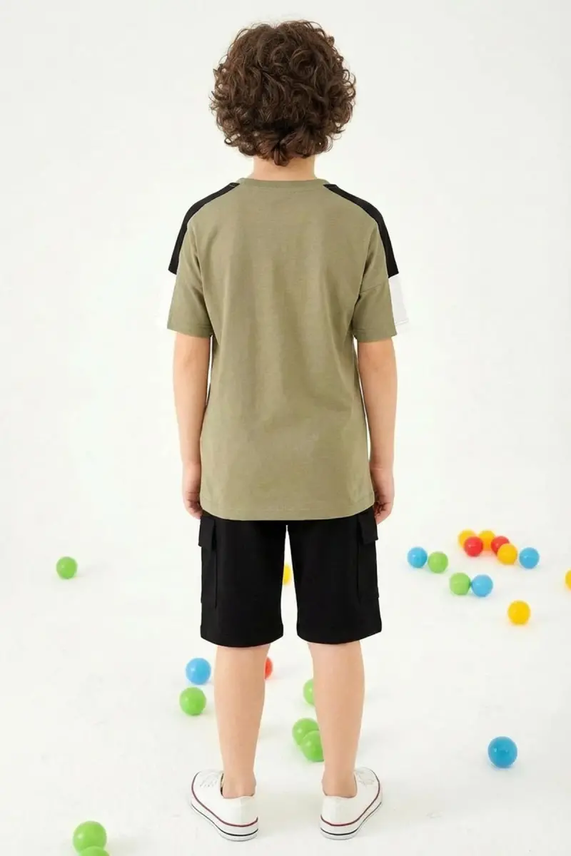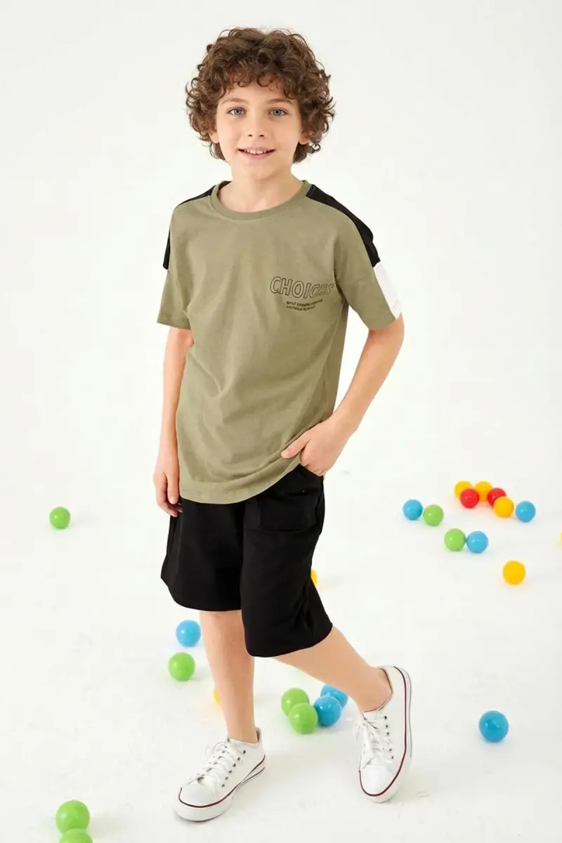 Choices Baskılı Kol Garnili Erkek Çocuk Şortlu Takım-Haki