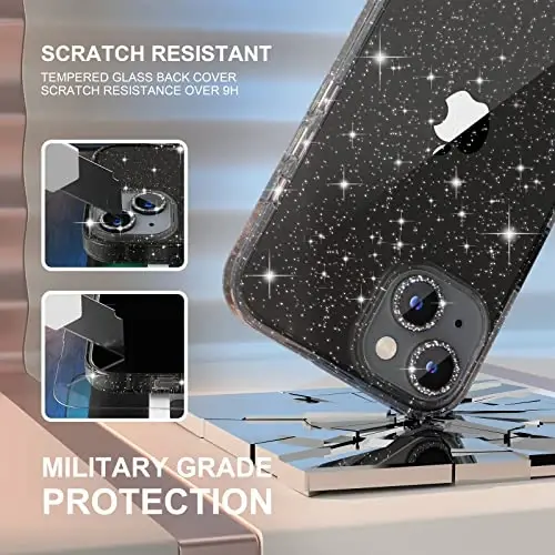 Package Includes: 1 x iPhone 14 Glitter Case, 2 x tempered glass screen protectors, and 2 x Camera Lens Protectors. Compatible for iPhone 14 6.1-inch 2022. Please check your phone model and make sure you order the right size Slim and Lightweight: Made of hard quality PC back and soft tpu frame which is durable. Slim Fit tightly to the phone body, doesn't make your iPhone 14 too bulky. Feels soft and easy to hold, offering enough grip for women and girls Full Glitter Design: Both the back and the side frame are full of glitter and come with a set shiny diamond camera lens protective cover, making your iPhone 14 more feminine and bringing more compliments Screen and Camera Protection: Raised edge lip provide extra protection for your iPhone screen and camera from scratches and dirt when your iPhone is dropped accidentally. The glitter camera protectors not only protect the lens but also personalized decorations Quality Service: 1-year quality services. We are happy to send out a new one (or a refund) for you if your product has any quality issues, please kindly let us know. So please feel easy to order it