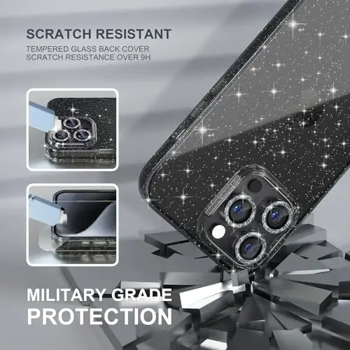 Protect your phone and add sparkle with the Choiche Compatible for iPhone 15 Pro Case! This specially designed case is a perfect option for women and young girls, offering both style and security. Its glittery design accentuates the elegance of your phone and ensures you stand out in daily use. Thanks to military-grade drop protection, your iPhone 15 Pro is safe from impacts and drops, while three diamond camera lens protectors and two tempered glass screen protectors safeguard your phone's sensitive areas from scratches and damage. Its slim and lightweight design provides comfortable use without adding bulk to your phone. The Choiche iPhone 15 Pro case is not just a protector but also a fashion accessory.