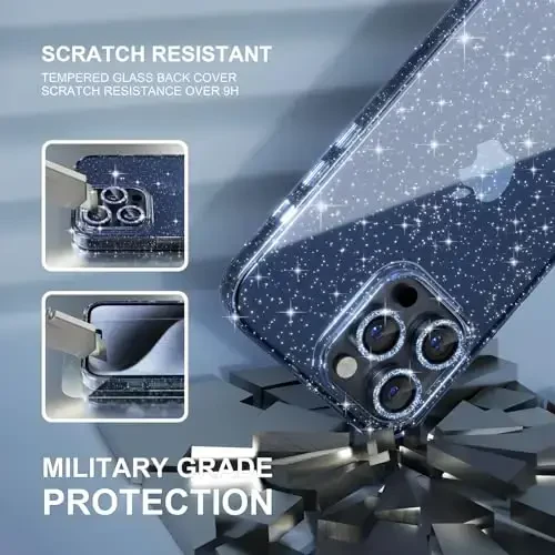 iPhone 15 Pro Glitter Case: Drop Protection, with Camera Lens Cover + 2 Glass Protectors