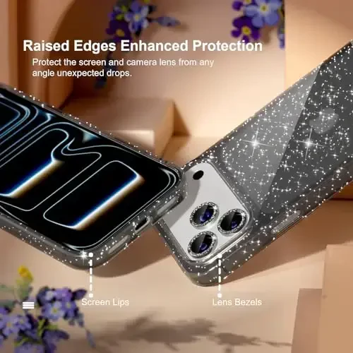 Keep your phone stylish and safe with the Choiche Compatible for iPhone 17 Pro Case! This special design case was created to reflect the elegance and sparkle of women. This eye-catching glittery case will make your iPhone 17 Pro stand out from the ordinary, giving it a unique look. The package includes not only the case but also additional accessories to protect your screen and camera lenses. With two tempered glass screen protectors and three diamond-look camera lens protectors, you can protect the most sensitive points of your phone against bumps, scratches, and dirt. This way, you can keep your phone looking as new as the first day. The slim and lightweight design of the case maintains the original slimness of your iPhone 17 Pro while providing a comfortable grip in your hand. Thanks to its hard PC back and soft TPU frame, it is both durable and flexible. This combination effectively protects your phone against impacts while allowing it to be easily installed and removed. The glitters on the case are long-lasting and high-quality, do not shed and do not fade over time. So the sparkle of your case always stays like the first day. We are also assertive about screen and camera protection. The raised edge design protects your phone's screen and camera from scratches when it comes into contact with flat surfaces. Diamond-look protectors specially designed for sensitive camera lenses protect the lenses and add a stylish detail to your phone. In this way, the quality of your photos and videos never decreases. The Choiche Compatible for iPhone 17 Pro Case is not only a protective accessory but also a fashion statement. It is the most stylish way to personalize your phone and reflect your style. Designed especially for women and young girls, this case allows you to carry your phone safely both in daily use and on special occasions. Moreover, our product is under quality guarantee for 1 year. If you experience any quality problems, we undertake to ensure your satisfaction by sending a new product or refunding your money. Therefore, you can order the Choiche Compatible for iPhone 17 Pro Case with peace of mind. You don't have to compromise on your style while protecting your phone!