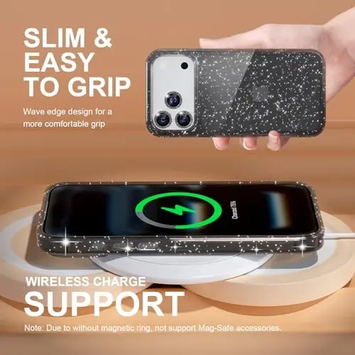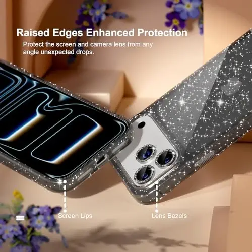 Protect your phone and give it an eye-catching look with the Choiche Compatible for iPhone 17 Pro Max Case. This special set combines elegance and durability to provide a perfect fit for your iPhone 17 Pro Max (6.9 inch) device. The set includes a sparkly case to protect your phone from scratches, bumps and daily wear and tear, two tempered glass screen protectors and three diamond-look camera lens protectors. The entire case has a sparkly design. Both the back and side frames are covered with glittery details. This gives your iPhone 17 Pro Max device a feminine and eye-catching look. Designed especially for women and young girls, this case will make you the envy of those around you. The diamond-look camera lens protectors that come with the case not only protect the lenses, but also add a personal touch to your phone. Thanks to its high-quality hard PC back and soft TPU frame, the case offers long-lasting use. Its slim and lightweight design preserves the original design of your phone without adding extra weight or bulk to your device. The slim fit design fits your phone perfectly and provides a comfortable grip in your hand. Resistant to drops and impacts, this case allows you to use your phone safely. Screen and camera protection is also an important part of this set. Raised edge lips protect your iPhone's screen and camera from scratches and dirt. Even if you accidentally drop your phone, these raised edges prevent damage to your screen and camera. Tempered glass screen protectors add an extra layer to your screen, providing more protection against scratches, cracks and impacts. At Choiche, we believe in the quality of our products and aim to provide you with the best service. Therefore, we offer a 1-year quality service for this product. If you encounter any quality issues with your product, please do not hesitate to contact us. We will be happy to send you a new product or provide a refund. Feel free to order this case and protect your iPhone 17 Pro Max device while giving it a stylish look. Please remember to check your phone model before ordering and make sure you order the correct size. This case is only compatible with the iPhone 17 Pro Max (6.9 inch) model.