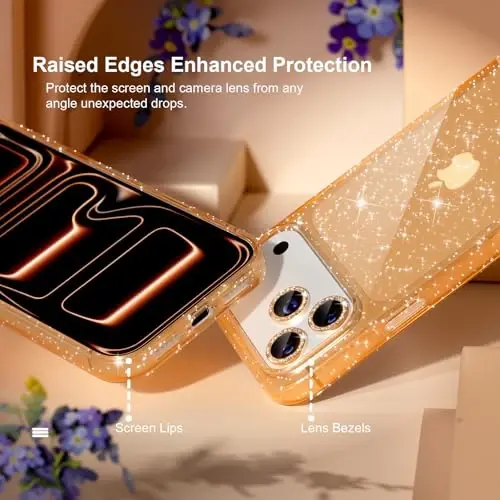 Protect your phone and give it a dazzling look with the Choiche Compatible for iPhone 17 Pro Max Glitter Case! This special design case set is perfectly compatible with the iPhone 17 Pro Max 6.9 inch (2025 model). The set includes 1 glitter case, 2 tempered glass screen protectors, and 3 diamond-look camera lens protectors. Make sure to check your phone's model and order the correct size.This case is not just a protector, but also a fashion accessory. Thanks to its hard PC back and soft TPU frame, it is both durable and flexible. Its slim and lightweight design preserves the elegance of your iPhone 17 Pro Max while adding no extra weight in your pocket or bag. The case fits your phone perfectly, providing comfort during use, and its non-slip surface allows you to hold your phone securely.Featuring a fully sparkling design, this case has eye-catching glitter details on both the back and side frames. In addition, the shiny diamond-look camera lens protector covers make your iPhone 17 Pro Max more feminine and attractive, allowing you to receive more compliments from those around you. Your phone's cameras are now safe and stylish!Screen and camera protection are among the most important features of this case. Raised edge lips provide extra protection for your iPhone screen and camera against scratches and dirt. Even if you accidentally drop your phone, it prevents damage to your screen and camera. Glitter camera protectors not only protect the lenses but also add a different touch to your phone with their personalized decorations.The Choiche Compatible for iPhone 17 Pro Max Glitter Case is not only a stylish accessory but also a reliable protection solution. Ideal for women and young girls, this case will add an aesthetic touch to your phone while protecting it from the wear and tear of daily use.Made of high-quality materials, this case offers long-lasting use. Its colors do not fade, it does not lose its shine, and it is easy to clean. The case is also very easy to install and remove, so you can use different cases whenever you want.If you want to both protect your phone and give it a stylish look, the Choiche Compatible for iPhone 17 Pro Max Glitter Case is for you! This case will not only protect your phone but also help you reflect your style.