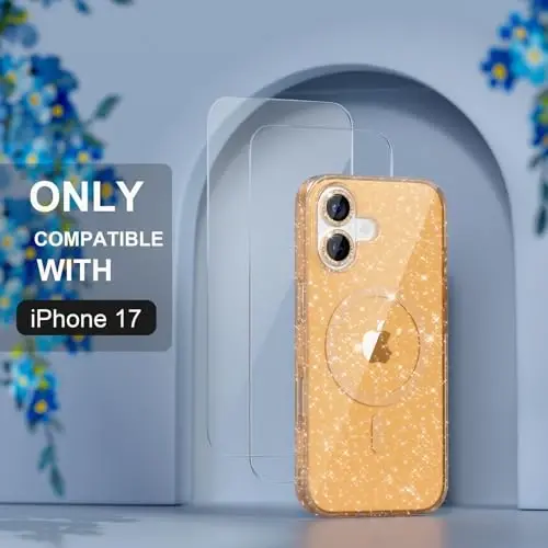 Package Includes: 1 x Glitter Magnetic Case Replacement for iPhone 17 , 2 x tempered glass screen protectors, and 1 set of Camera Lens Protectors.Only Compatible with iPhone 17 6.3-inch 2025. Please check your phone model and make sure you order the right size Strong Magnetic Power: This compatible Mag-Safe iPhone 17 case provides powerful built-in magnets with 1500g of holding force enabling faster, easier place-and-go wireless charging and a secure lock on any Mag-Safe accessory Militarty Grade Drop Protection: Made of quality hard PC back and soft tpu frame which is durable. Slim Fit tightly to the phone body, doesn't make your iphone 17 phone case too bulky. Feels soft and easy to hold, offering enough grip for women and girls Full Glitter Design: Both the back and the side frame are full of glitter and come with a set shiny diamond camera lens protective cover, making your 17 more feminine and bringing more compliments Screen and Camera Protection: Raised edge lip provide extra protection for your iPhone screen and camera from scratches and dirt when your iPhone is dropped accidentally. The glitter camera protectors not only protect the lens but also personalized decorations.