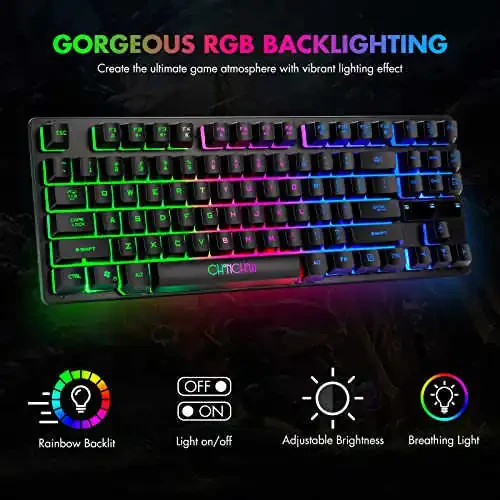 CHONCHOW, 87 keys keyboard, TKL keyboard, gaming keyboard, mouse, RGB mouse, gaming gear, PS4, Xbox, PC, laptop, Mac