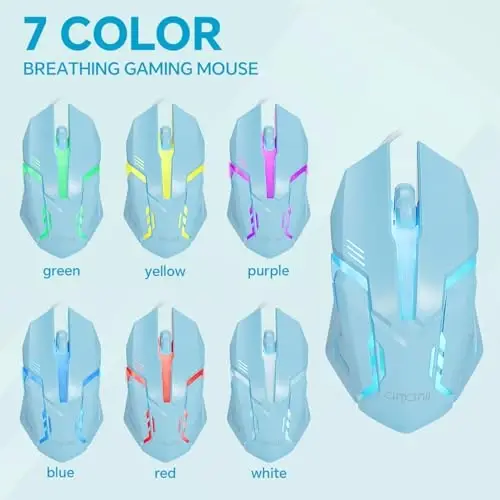 Compact 87 Keys Design----No additional number keys, more desktop space for your mouse to move, meets your demands in office or home. You will be satisfied with how much space you save. Blue keyboard size: 13.5*5.5*1.2 inches Backlit Keyboard----There are 2 light up modes and 3 levels of brightness for choice. Press light key: Static Backlit/turn off; FN and light key: Dynamic backlight. Fn and PgUp: Adjust the brightness plus; Fn and PgDn: Adjust the brightness reduction High-performance Membrane Keyboard----12 multimedia keys, convenient for your game operation or work efficiency. Interchangeable WASD key and lock WIN key function, improve your game performance. 19 anti-ghosting keys that you will not lose every click, ensuring smooth typing Wired RGB Mouse----The USB wired blue mouse uses high-precision sensors and the low friction polytetrafluoroethylene feet to provide you with precise and smooth control. Four levels of DPI(Dots Per Inch) can be easily switched (800/1600/2400/3200). 6 buttons (two side buttons). Long press the DPI button to switch between 7-color breathing/red light.Gaming mouse size: 5.23*2.75*1.57 inch Exquisite Mouse Pad----Size: 10.12x 8.16 inch, provides large space for mouse moving, made of superior material, Smooth exquisite cloth on surface provide comfortable wrist rest support, the rubber at the bottom ensures mouse pad does not slip Great Compatibility----The blue keyboard and mouse work for PC,Laptop,PS3,PS4,PS5,Xbox,Mac. USB plug and play, no additional driver is needed. Compatible with Windows 2000/2003 / XP / Vista / Win7 / Win8 / Win10 / Win11 After-sales Service----If you have any quality problems, please tell us and we will serve you wholeheartedly. For quality issues, we will provide satisfactory after-sales service