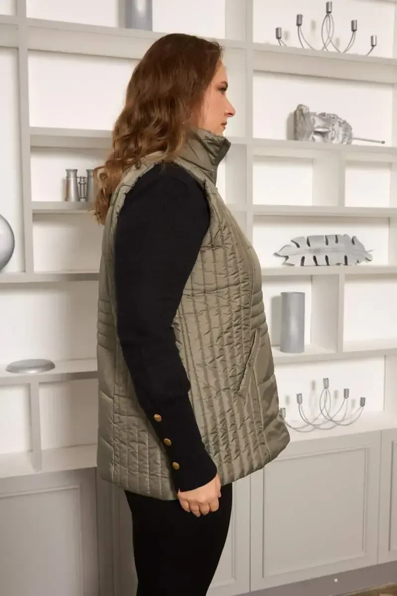 Katta o'lchamli kapitone jilet xaki | Cho'ntakli zamonaviy qulay model