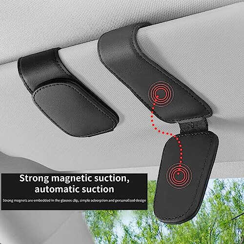CHOSMOYI Manyetik Deri Güneş Gözlüğü Tutucu, arabanızın güneşliğine kolayca takılabilen ve güneş gözlüğünüzü güvenli bir şekilde tutan pratik bir aksesuardır. Dayanıklı deri malzemeden üretilen bu tutucu, aracınızın iç tasarımına uyum sağlayan şık bir görünüm sunar.