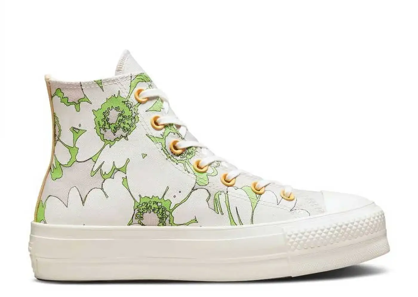 Yangi gul naqshlari va yorqin ranglar eng sevimli platformalaringizni keyingi bosqichga olib chiqadi. O'smirlar va ayollar uchun CHUCKS IN BLOOM. Biz ikonik Chuck Taylor All Starni oldik va uning o'rta qismini ko'tardik, shunda sizga ajoyib platform uslubini taqdim etamiz. Keng gul naqshlari sizning gullarga bo'lgan muhabbatingizni qayta ishlangan paxta matosiga qarshi maksimal darajada oshiradi, yorqin va qulay ranglar orqali gullab-yashnaydi. Chuck Taylor All Star dizaynining aniq elementlari, masalan kauchuk oyoq barmog'i uchi va olmos naqshli oyoq barmog'i bamperi bilan to'ldirilgan. Gullang.