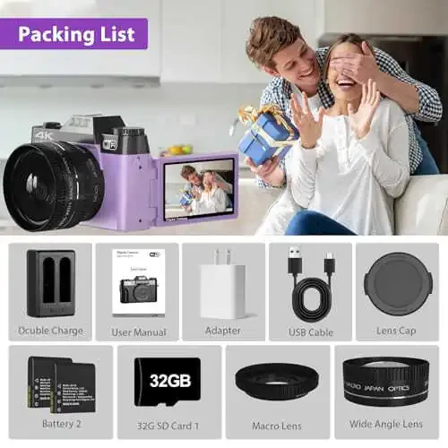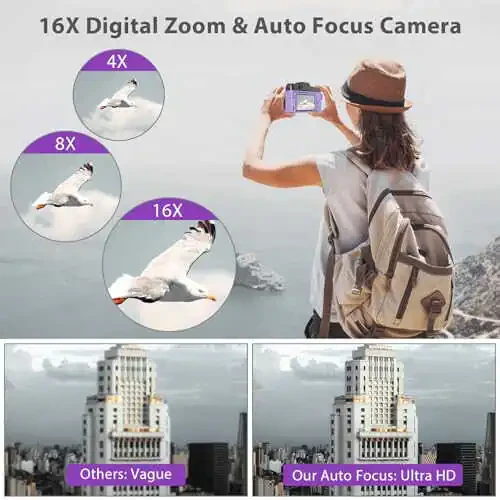 Шагните в новую эру фотографии и видеосъемки! Эта цифровая камера с разрешением 4K 48MP позволит вам запечатлеть каждый момент в живых цветах и с четкой детализацией. Идеально подходит для влогов на YouTube, воспоминаний о путешествиях, особых случаев и многого другого, эта камера придаст каждой фотографии и видео профессиональный вид.