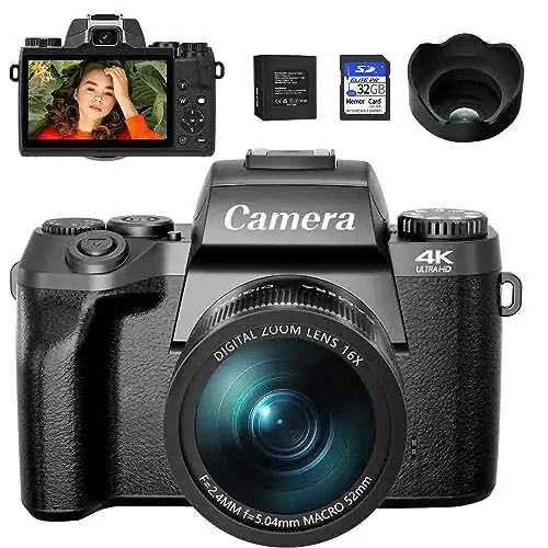 Цифровая камера Saneen оснащена удобным сенсорным интерфейсом. Благодаря функции Wi-Fi вы можете легко делиться своими фотографиями и видео. Она также оснащена встроенной вспышкой, SD-картой на 32 ГБ, блендой и аккумулятором емкостью 3000 мАч.
