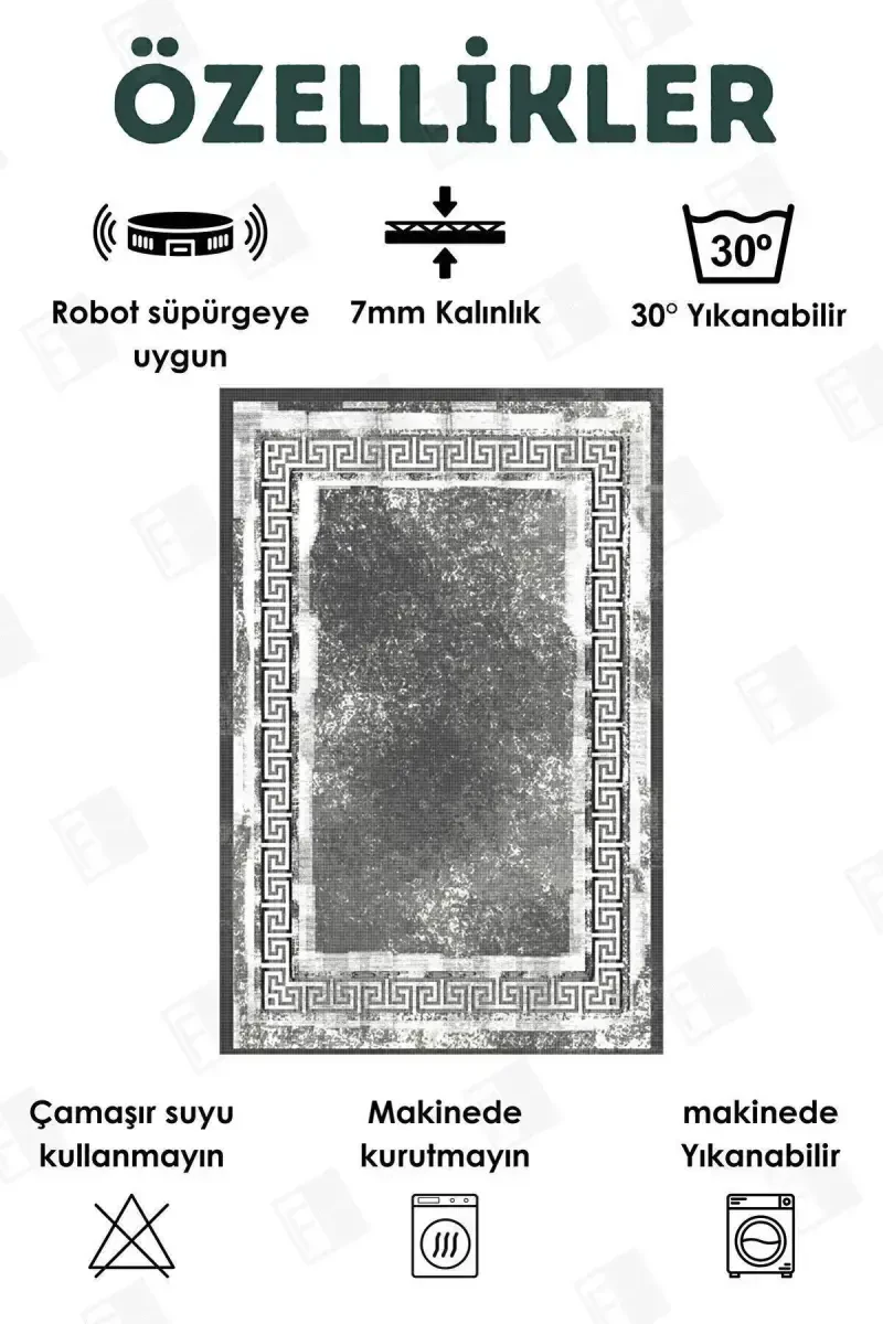 Цифровой принт, всесезонный, моющийся, нескользящий коврик для детской, прихожей, кухни и гостиной добавит современный штрих вашему дому! Этот ковер антрацитового цвета, элегантный и подходящий для любого пространства, изготовлен с качеством Ferahome. Благодаря высокотехнологичной цифровой печати этот ковер с яркими и не выцветающими цветами можно безопасно использовать в любой области, от детских комнат до гостиных, от кухонь до коридоров. Нескользящее основание обеспечивает безопасность, а моющаяся ткань обеспечивает гигиеническое использование. Если вы ищете удобный и практичный ковер, который дополнит интерьер вашего дома, вы попали в нужное место. Наш продукт, обладающий антиаллергенными и антибактериальными свойствами, защищает ваше здоровье, а благодаря своей непыльной и нелиняющей структуре облегчает уборку. Конструкция, подходящая для робота-пылесоса, позволяет легко выполнять ежедневную уборку. Этот ковер, подходящий для использования в течение четырех сезонов, также способствует энергосбережению благодаря своей теплоизоляции. Кроме того, он легкий, поэтому его легко переносить и расстилать. Это идеальный выбор для создания теплой и уютной атмосферы в каждом уголке вашего дома. Не забывайте, что важно измерить ширину и длину места, где вы будете расстилать ковер, с помощью метровой линейки, чтобы выбрать правильный размер для вашего заказа. Благодаря современному дизайну, превосходным характеристикам и простоте использования этот ковер станет незаменимым в вашем доме.