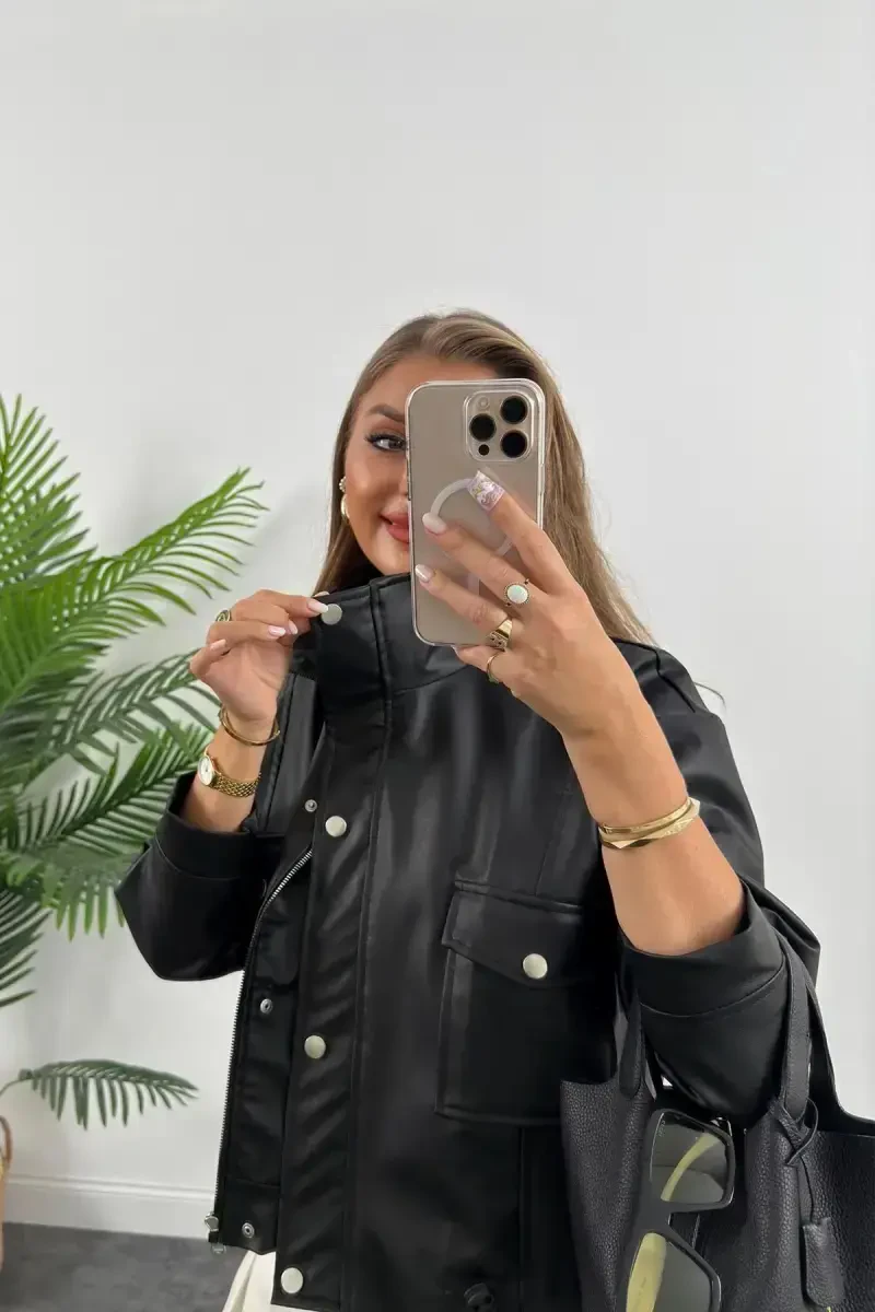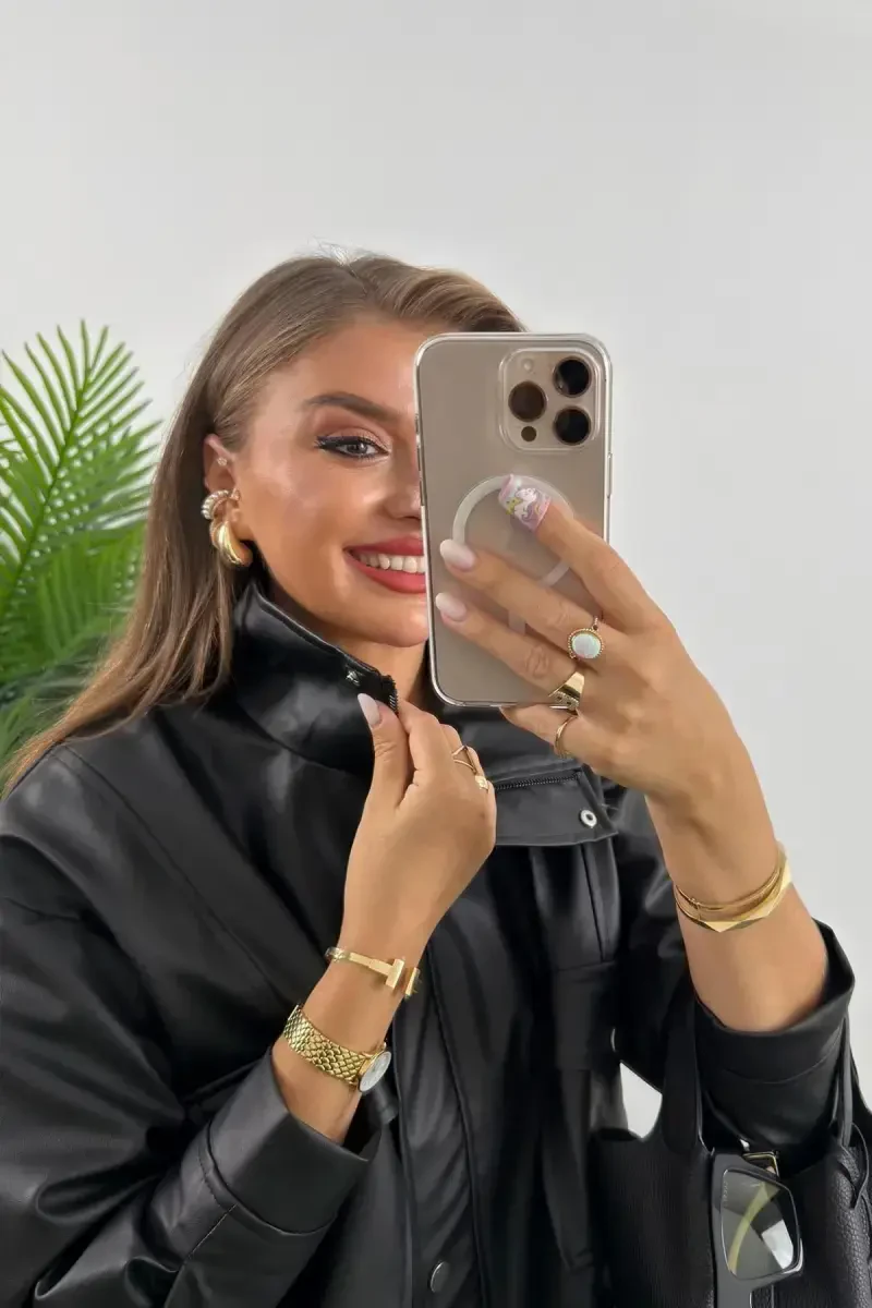 Çift Cep Yan Büzgülü Deri Ceket, her mevsimde kullanabileceğiniz çok yönlü bir seçenek. Soğuk havalarda sizi sıcak tutarken, yaz akşamlarında da şık bir tamamlayıcı rolü üstleniyor. İster jean pantolon ve tişört, ister elbise ve topuklu ayakkabı ile kombinleyin, bu ceket her zaman tarzınızı ön plana çıkaracak.