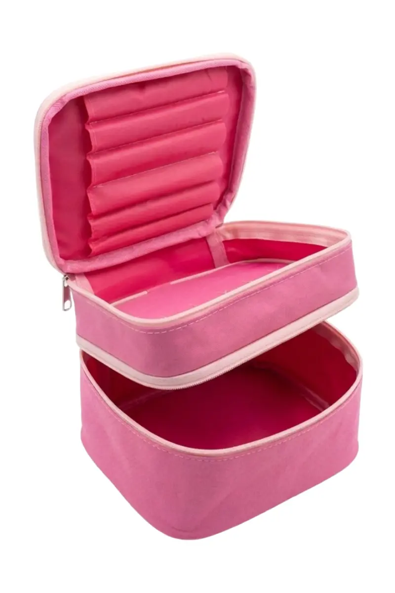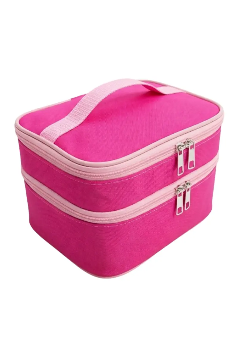 Çift Katlı Captain Seyahat Makyaj Çantası - Büyük Boy Fonksiyonlu Kozmetik Düzenleyici Fuşya-Fuşya