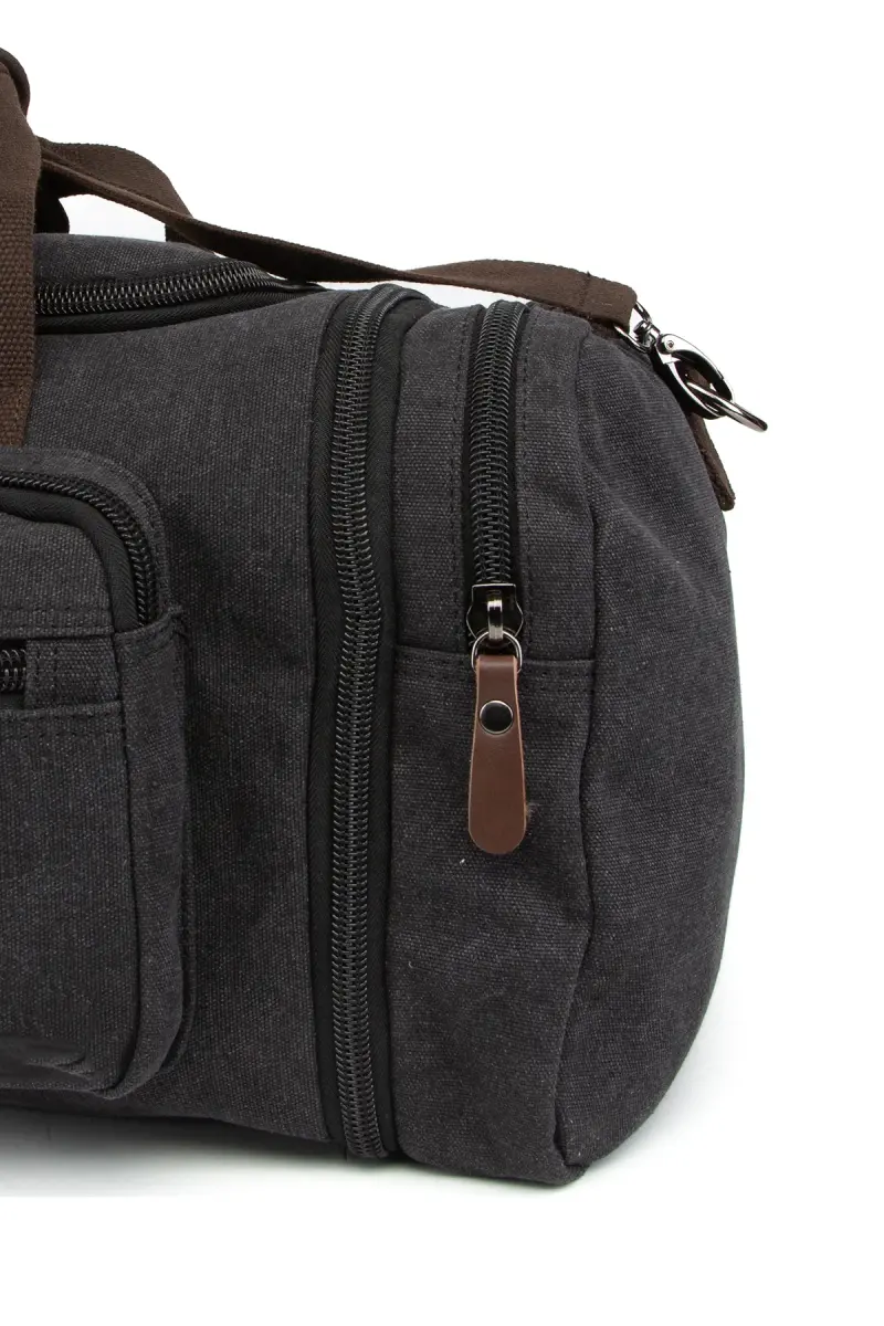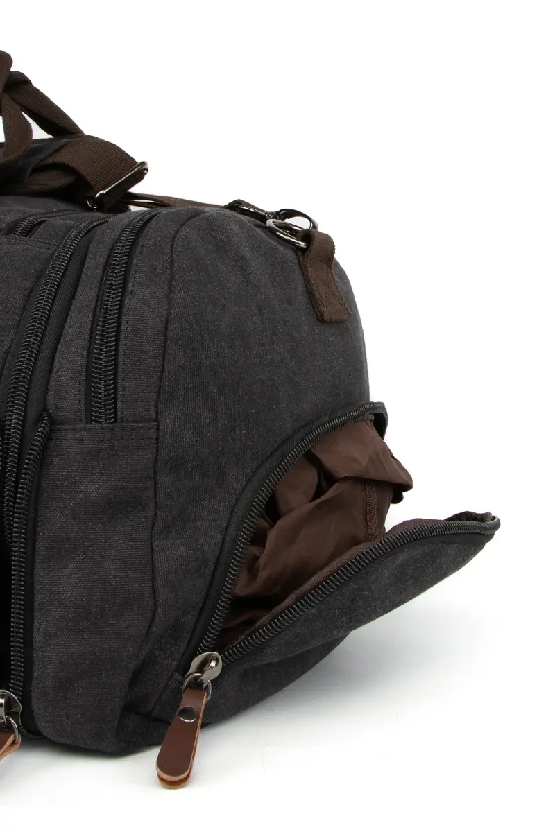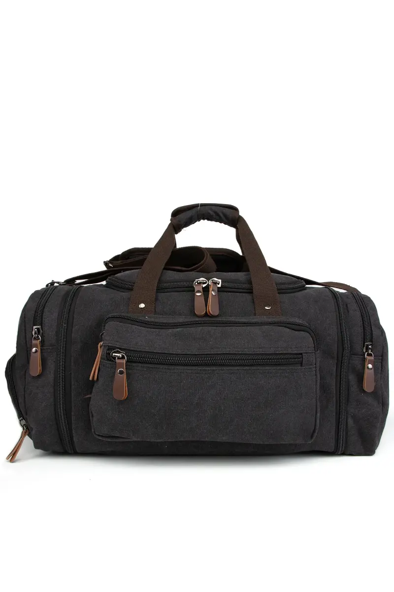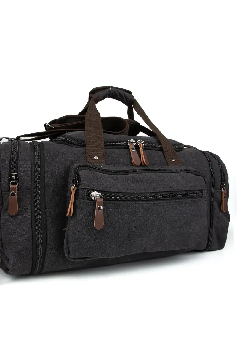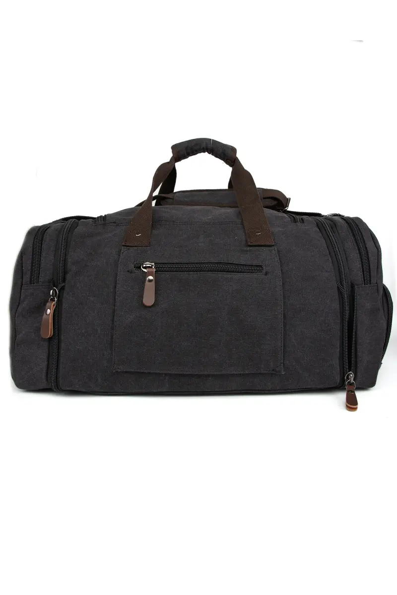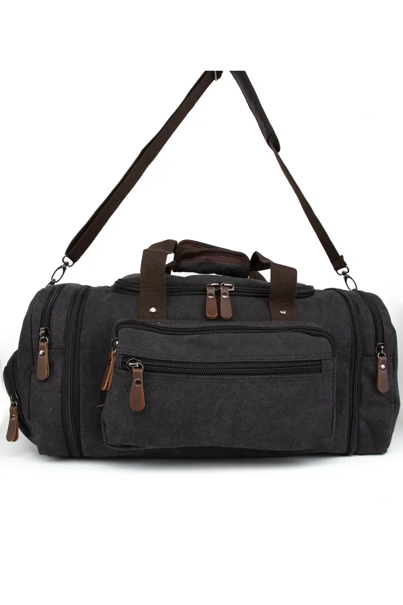 Çift Körüklü Ayakkabı Bölmeli Kavas Kumaş Spor Ve Seyahat Valizi Siyah-Siyah