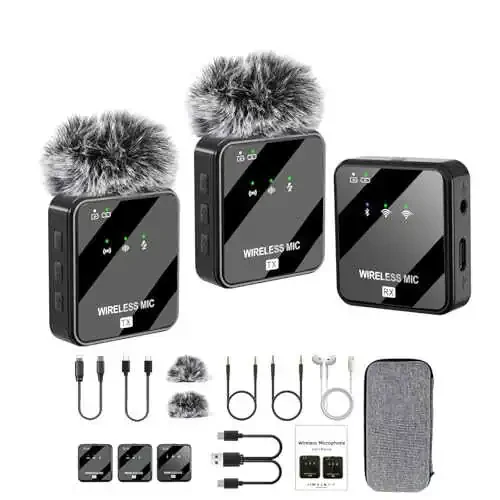 Dual Mini Kablosuz Mikrofon - iPhone, Android, Laptop için Ses Kaydı