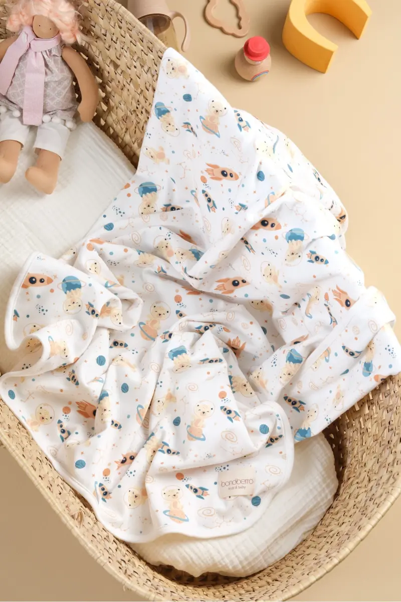 Çift Taraflı İnterlok Örtü & Battaniye %100 Pamuk Oeko-teks Sertifikalı 100 X 85 Cm-Uzay