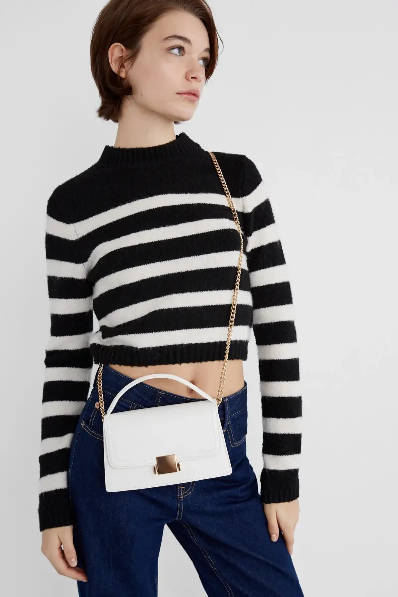 Çift tutma saplı çapraz askılı çanta-Beyaz
