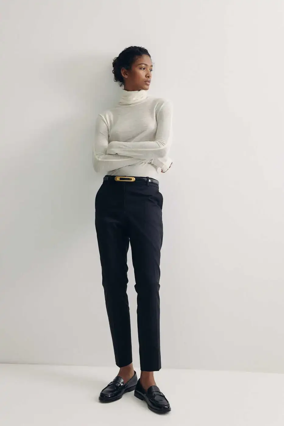 Cigarette pants can be combined with almost anything. They can be completed with a stylish blouse, T-shirt, shirt or sweater. Combined with heels, you will get a sleek and sophisticated look. For a more casual look, you can opt for flats or sneakers.