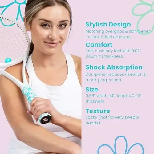 Этот набор — отличный способ персонализировать свою теннисную ракетку и добавить стиля в свою игру. Липкая структура обмотки помогает лучше контролировать ракетку, а виброгаситель уменьшает вибрацию, обеспечивая более чистое ощущение удара. Продукт подходит для игроков любого уровня благодаря своей простой в применении структуре. Однако он может не подходить для сильно потеющих рук. Для длительного использования храните изделие в сухом и прохладном месте.