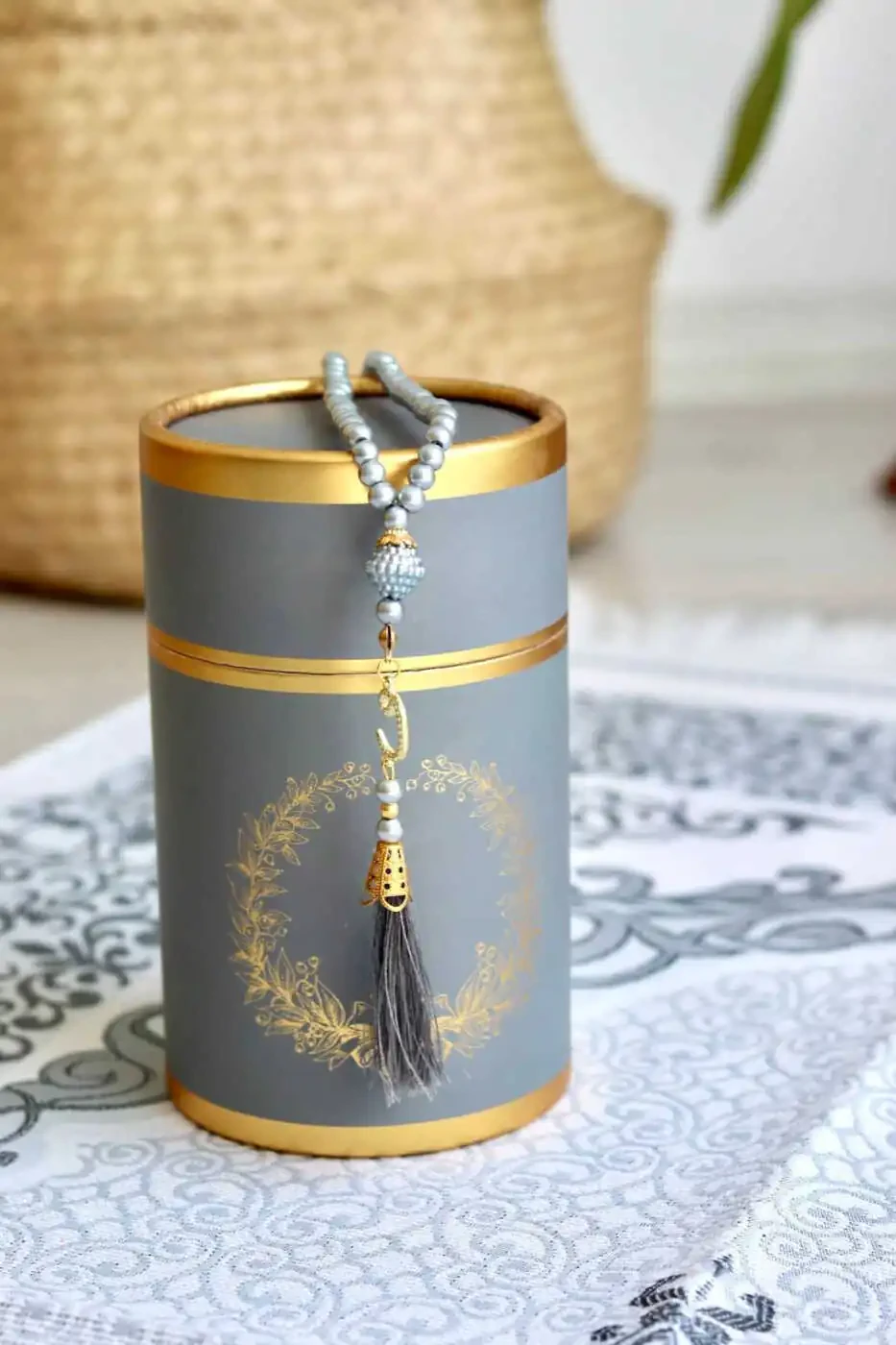Набор молитвенного коврика и четки в цилиндрической коробке S1040 серый - это особый продукт, который добавит элегантности и духовности в ваш день Мавлид. Молитвенный коврик из тафты размером 65 х 115 см обеспечивает широкую и удобную область для использования. Его мягкая, похожая на хлопок текстура позволит вам спокойно совершать молитвы. Входящие в комплект четки из 99 жемчужин придают вашим молитвам смысл и умиротворение. Успокаивающее воздействие жемчужных бусин сделает ваше время молитвы еще более особенным. Продукт поставляется в стильной цилиндрической коробке. Размеры коробки 10 х 18 см, что делает ее как стильной, так и удобной для переноски. Этот специальный набор является идеальным выбором как для себя, так и в качестве подарка для своих близких в день Мавлид.