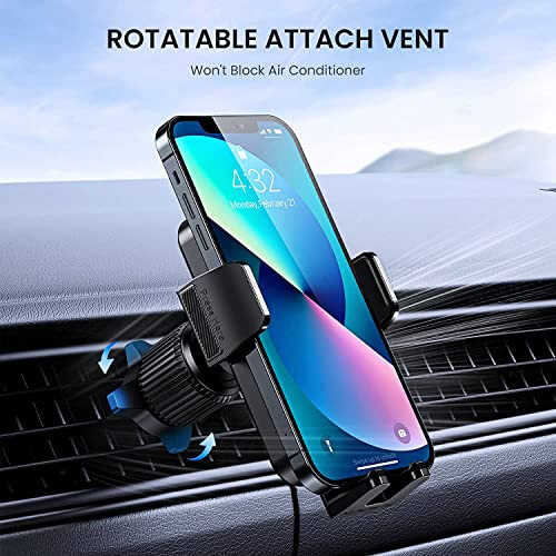 Upgraded Metal Hook: Car phone holder mount features an upgraded metal hook with a thick plastic layer wrapped around outside which firmly locking the vent blades without scratches. The iPhone car mount is compatible with both horizontal and vertical vents, ensures stable even on sharp turns or bumpy roads. Strong Stability: Phone stand for car comes with an upgraded adjustable arms and an adjustable foot which is suitable for larger phones and thicker cases. The extra thick airbag silicone layer clip arms provides a stable grip and protection, ensure your iPhone is scratch-free. 360-Degree Adjustable: iPhone holder for Car has a 360 degree rotatable design that switches between horizontal and vertical angles at will, giving you the best view angle of your driving at all times. Ideal for on-the-go navigation. Easy to install: Phone holder for car is equipped with a one-touch release button for quick installation in seconds. Ensure your driving safety on the road. High compatibility: Car phone holder fits iPhone 14 13 12 Pro Max Samsung Andriod and all cell phones from 4 .0 inches to 7.1 inches. Car mount for iPhone is suitable for most cars, pick-up trucks, SUVs, taxis. Perfect assistant for Uber, Lyft drivers. Great Quality: Porta telefono para carro is made of heat and abrasion resistant PC+ABS material that can withstand extreme temperatures from -4°F to 198°F. Attention: The adjustment hook extension range 11mm-32mm. The thickness of the vent blade is less than 3.5mm. Not suitable for round vents.