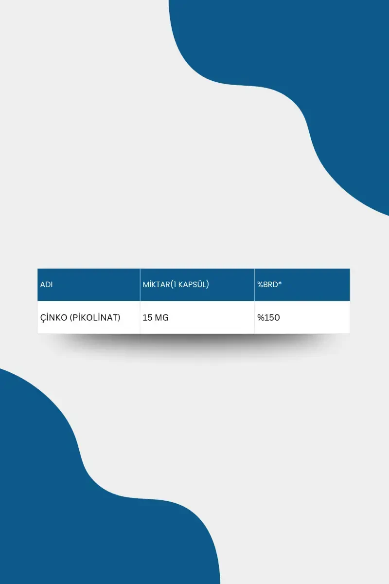 çinko pikolinat, bağışıklık sistemi, hücre büyümesi, hücre onarımı, cilt sağlığı, saç sağlığı, tırnak sağlığı, antioksidan, serbest radikaller, gece görüşü, koku alma duyusu, enerji seviyeleri, duygusal sağlık, ruhsal sağlık