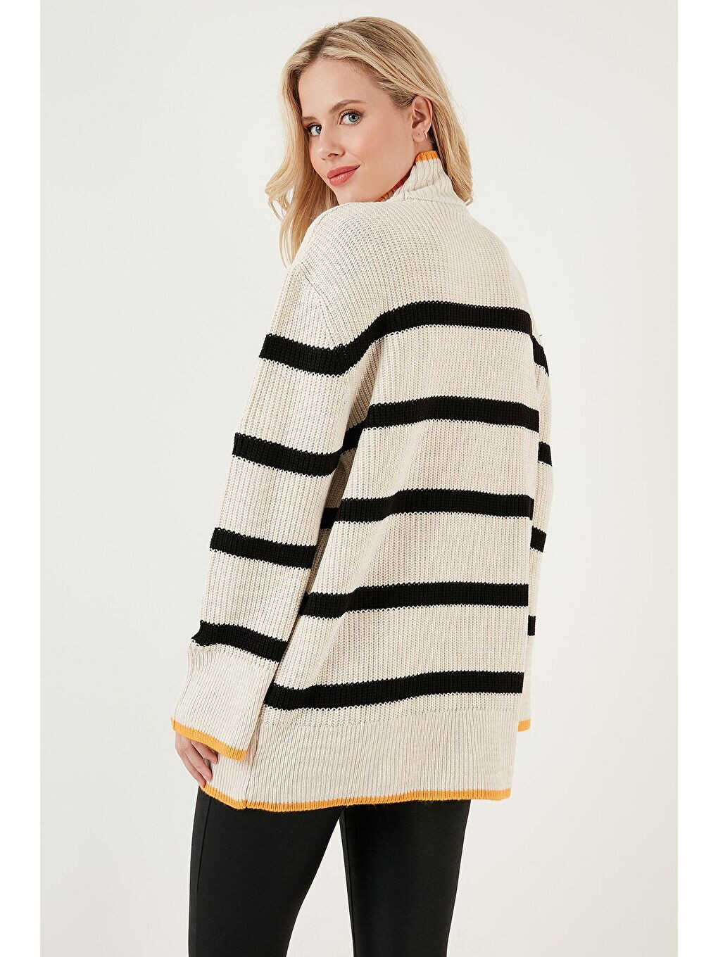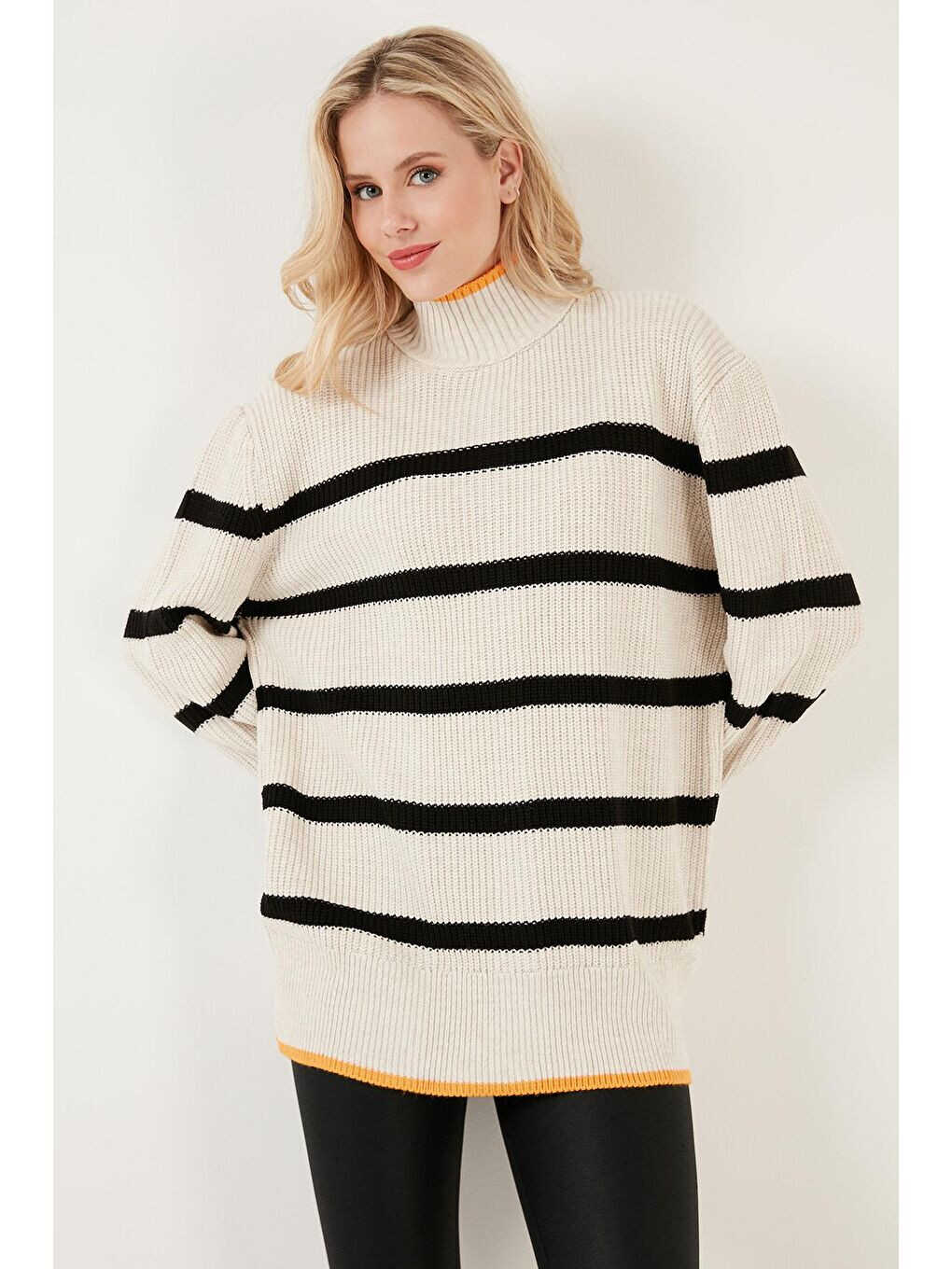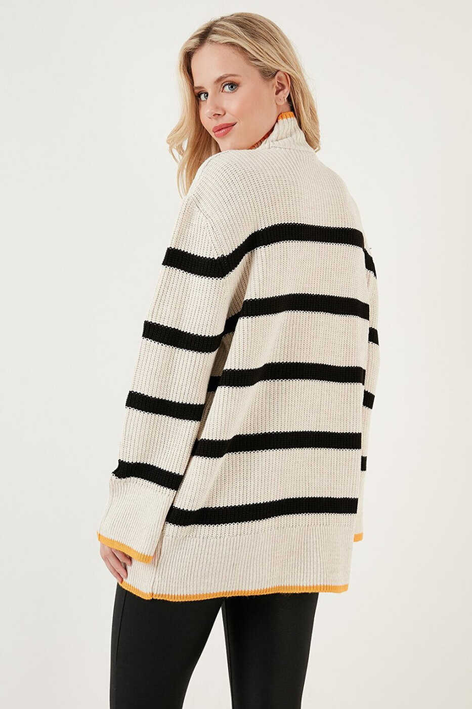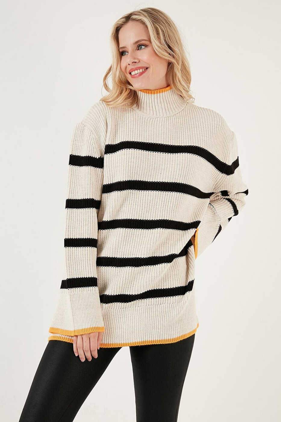 Chiziqli Balıkçı Yaka Keng Ko'lli Triko Ko'ylagi bilan qish oylarida ham uslubingizdan voz kechmang, bu ko'ylagi uslub va qulaylikni birlashtiradi.