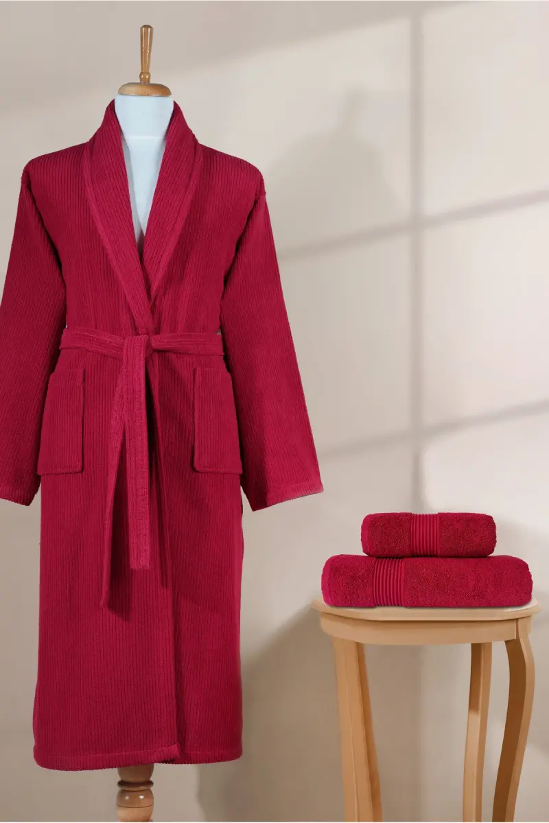 Bu ürün Ellaline tarafından gönderilecektir.Kampanya fiyatından satılmak üzere 100 adetten fazla stok sunulmuştur.İncelemiş olduğunuz ürünün satış fiyatını satıcı belirlemektedir.Bir ürün, birden fazla satıcı tarafından satılabilir. Birden fazla satıcı tarafından satışa sunulan ürünlerin satıcıları ürün için belirledikleri fiyata, satıcı puanlarına, teslimat statülerine, ürünlerdeki promosyonlara, kargonun bedava olup olmamasına ve ürünlerin hızlı teslimat ile teslim edilip edilememesine, ürünlerin stok ve kategorileri bilgilerine göre sıralanmaktadır.Bu üründen en fazla 10 adet sipariş verilebilir. 10 adedin üzerindeki siparişleri Trendyol iptal etme hakkını saklı tutar. Belirlenen bu limit kurumsal siparişlerde geçerli olmayıp, kurumsal siparişler için farklı limitler belirlenebilmektedir.15 gün içinde ücretsiz iade. Detaylı bilgi için [page="return_conditions"]tıklayın .Çizgili Bornoz Seti %100 Pamuk Sertifikalı 3 Parça Şalyaka Bornoz ve Havlular Takımı Bordo.%100 pamuktan üretilmiş yüksek emiciliğe sahip bornoz ve havlu takımıdır.Şalyaka kesimiyle hem kadın hem erkek kullanıcılar için uygundur.Banyo, spa, sauna ve çeyiz kullanımı için idealdir.OEKO-TEX Standard 100 sertifikalı üretimle tamamen güvenlidir.Paket İçeriği: Seçtiğiniz renk varyasyonunda 1 Adet Şalyaka Çizgili Unisex Bornoz %100 Pamuk + 1 Adet Çizgili Bordürlü Kafa Havlusu (50x90 cm. ) + 1 Adet Vücut Havlusu (70x140 cm. ) olmak üzere toplam 3 parçadan oluşur.Bornoz 360 gr/m² gramaj değerinde, sık dokunmuş, yüksek emicilik ve yumuşaklıkta, premium bukle havlu kumaşından üretilmiştir.Şalyaka yaka ve cepli tasarımıyla konfor ve şıklığı bir arada sunar.Kafa havlusu ve vücut havlusu 450 gr/m² ağırlığında, çizgili bordür tasarımına sahip dokuma kumaştan üretilmiştir.Vücut havlusu yaz aylarında bornoz yerine kullanılabilir ve hafif dokusuyla ideal bir kurulanma alternatifi sunar.Çizgili deseniyle sade ama zarif bir görünüm sağlar.Hem evde hem banyoda günlük kullanım için uygundur.Kafa havlusundaki şık çizgili bordür tasarımı sete zarif bir dokunuş katar.Cilde zarar vermeyen, tamamen doğal pamuk ipliklerinden dokunmuştur.Havuz ve plaj kullanımı için de uygundur.Boyama sürecinde OEKO-TEX sertifikalı boyalar kullanılmıştır.Ek Bilgi: Ürün tekrar kullanılabilir PVC koruma kılıfında gönderilir.Bu kılıf toz ve su geçirmez olup, ürününüzü hijyenik şekilde saklamak için idealdir.Kullanmadan önce yıkayınız.40°C'de makinede yıkanabilir, ütü ve kurutma makinesine uygundur.Ürün tekrar kullanılabilir PVC koruma kılıfında gönderilir, bu kılıf toz ve su geçirmez olup ürününüzü saklamak için idealdir.Fabrikamız 24.HTR.54595 lisans numaralı OEKO-TEX Standard 100 Sertifikasına sahiptir ve bu ürün sertifikalı %100 pamuktan üretilmiştir.1990’dan beri yüksek kalite üretim yapan firmamız tarafından Denizli'de üretilmiştir.