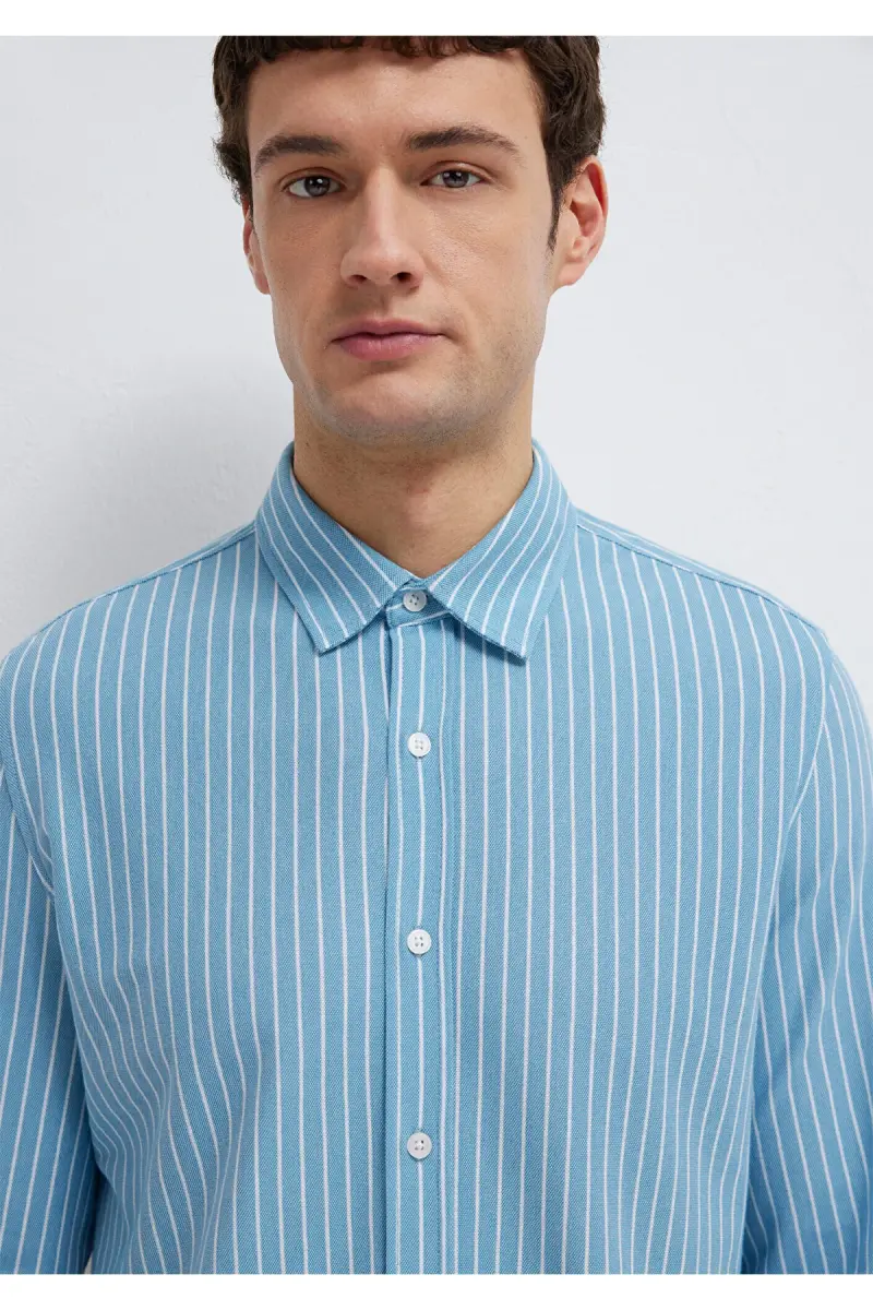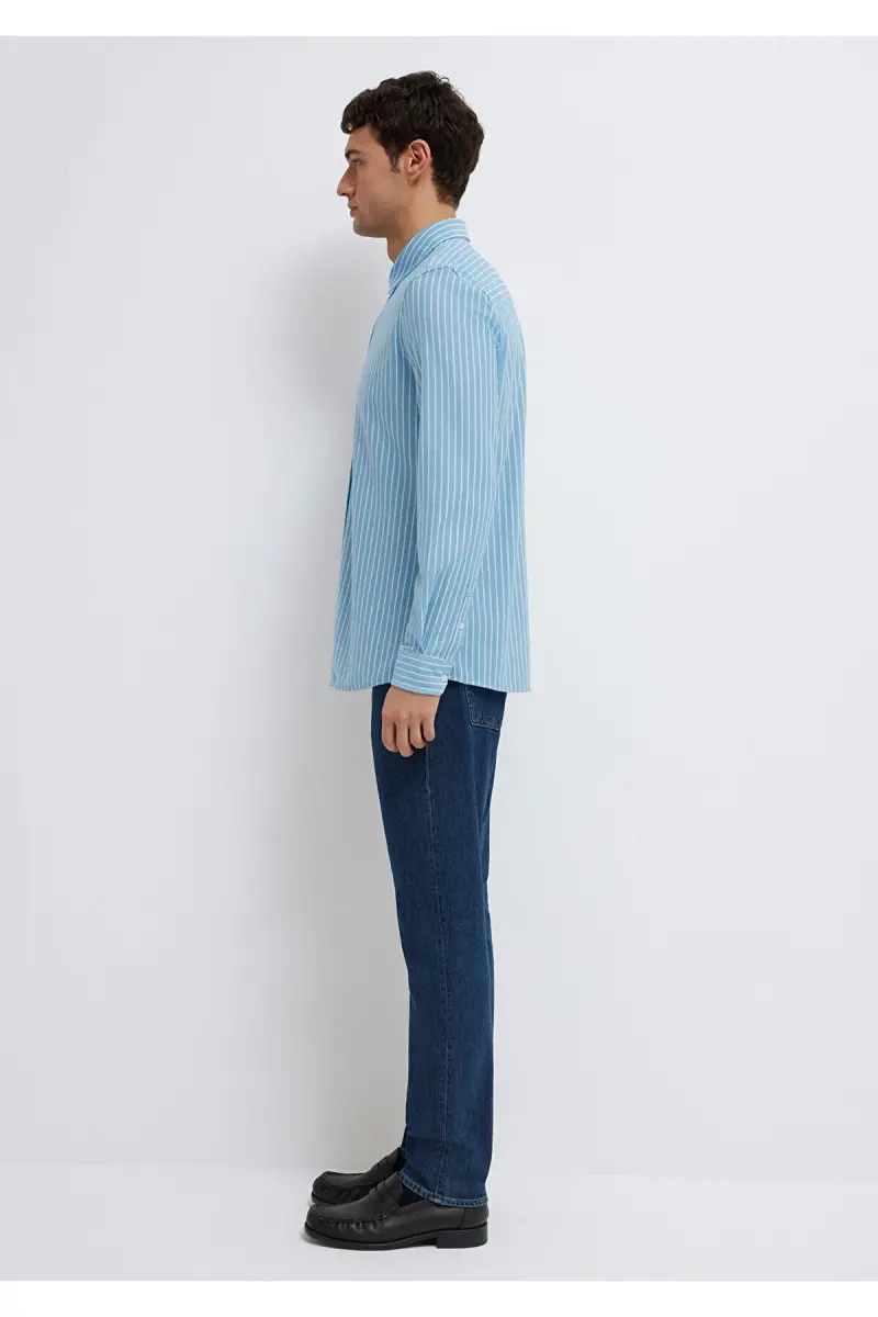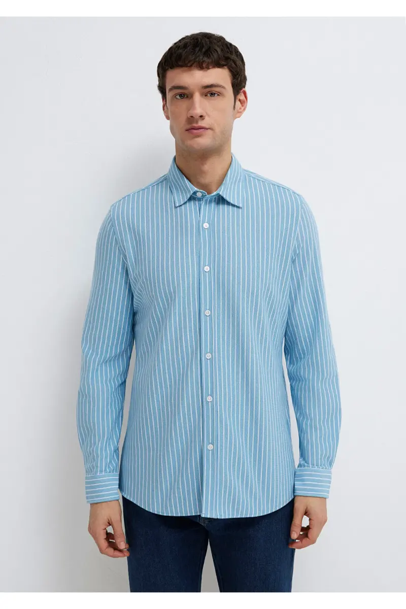 Çizgili Gömlek Slim Fit / Dar Kesim 0211404-91579-Mavi