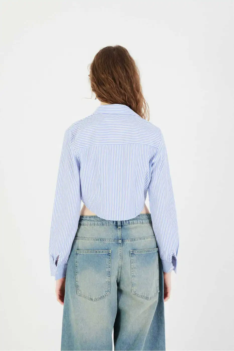 Şık Çizgili Crop Gömlek - Hızlı Kargo & Ücretsiz İade