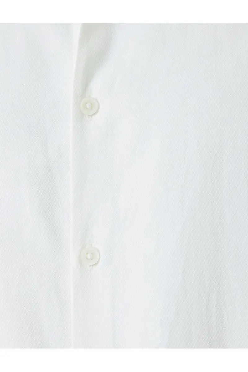 60% Cotton, 40% Polyester, Plain White, Slim Fit, Semi Italian Collar, Long Sleeve, Pocketless, Buttoned, Casual / Daily, Spring-Summer Collection,