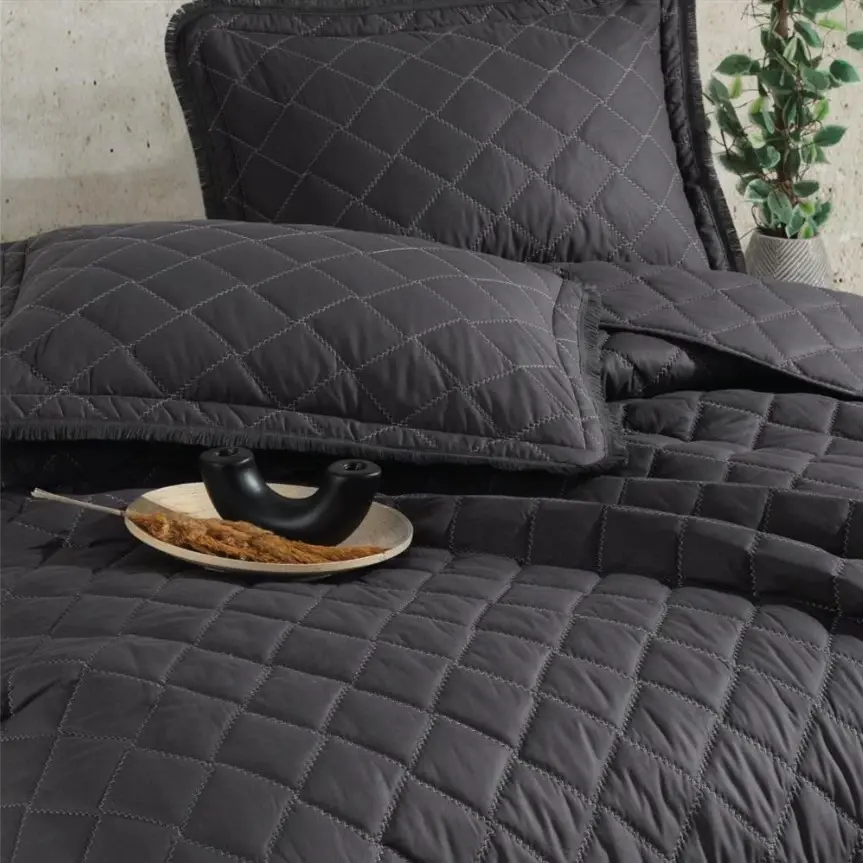 Clasy Çift Kişilik Yatak Örtüsü Tafana V1 Antrasit, estetik görünümü ve üstün özellikleriyle yatak odanızın vazgeçilmezi olmaya aday. Yüksek kaliteli kumaşı sayesinde uzun ömürlü bir kullanım sunarken, antrasit rengiyle modern ve sofistike bir hava yaratır. Bu yatak örtüsü, sadece bir örtü değil, aynı zamanda yatak odanızın dekorasyonunun tamamlayıcı bir parçasıdır. Tafana V1 modeli, evinize şıklık ve konforu bir arada getirir. Ürünün dokusu, teninize hoş bir his verirken, hafif yapısı sayesinde kolayca serilip toplanabilir. Clasy kalitesiyle üretilen bu yatak örtüsü, renklerinin canlılığını uzun süre korur ve yıkama sonrası deformasyonlara karşı dayanıklıdır. Yatak odanızda huzurlu ve rahat bir ortam yaratmak istiyorsanız, Clasy Çift Kişilik Yatak Örtüsü Tafana V1 Antrasit tam size göre. Ürün, sadece görsel bir şölen sunmakla kalmaz, aynı zamanda pratik kullanımıyla da hayatınızı kolaylaştırır. Yatak odanızın dekorasyonuna uyum sağlayacak bu şık yatak örtüsü, misafirlerinizi de etkileyecek bir zarafete sahiptir. Clasy’nin özenle tasarladığı bu ürün, modern yaşamın gereksinimlerini karşılayan, kullanışlı ve estetik bir seçenektir. Tafana V1 modeli, yatak odanızın atmosferini yenileyerek, güne zinde başlamanıza yardımcı olur. Antrasit renginin sakinleştirici etkisiyle, uyku kalitenizi artırabilir ve dinlenmiş bir şekilde uyanabilirsiniz. Bu yatak örtüsü, hem kendiniz hem de sevdikleriniz için mükemmel bir hediye seçeneği olabilir. Clasy, yatak odası tekstili konusunda yılların verdiği deneyimle, en iyi malzemeleri kullanarak, kullanıcı memnuniyetini ön planda tutar. Tafana V1 modeli de bu anlayışın bir ürünü olarak, yatak odanızda uzun yıllar boyunca keyifle kullanabileceğiniz bir üründür. Ürünün kolay temizlenebilir olması, günlük kullanımda size büyük bir avantaj sağlar. Leke tutmayan yapısı sayesinde, uzun süre ilk günkü gibi yeni kalır. Clasy Çift Kişilik Yatak Örtüsü Tafana V1 Antrasit, yatak odanızın şıklığını tamamlayacak ve konforunu artıracak mükemmel bir seçimdir. Modern tasarımı, yüksek kaliteli malzemesi ve pratik kullanımıyla, beklentilerinizi fazlasıyla karşılayacaktır. Yatak odanızda fark yaratmak ve kendinizi özel hissetmek için bu ürünü tercih edebilirsiniz.