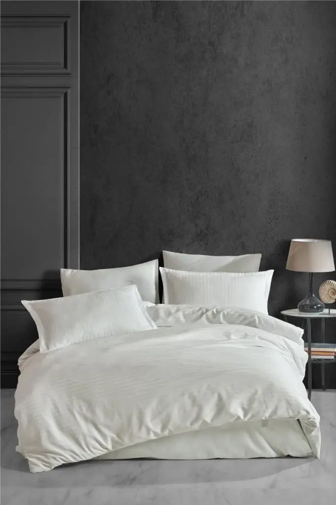 Clasy Çizgili Saten Nevresim Takımı Çift Kişilik Ekru
