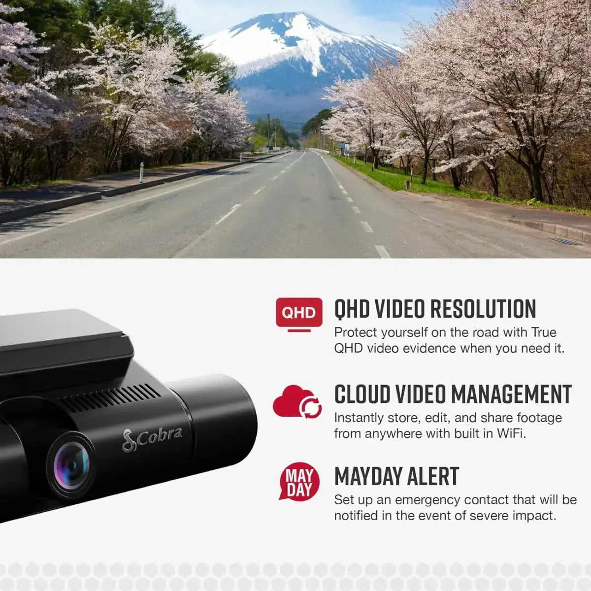 Cobra SC 220C, Smart Dual View Dash Cam, QHD oʻlchami, 360 taʼsir qilish