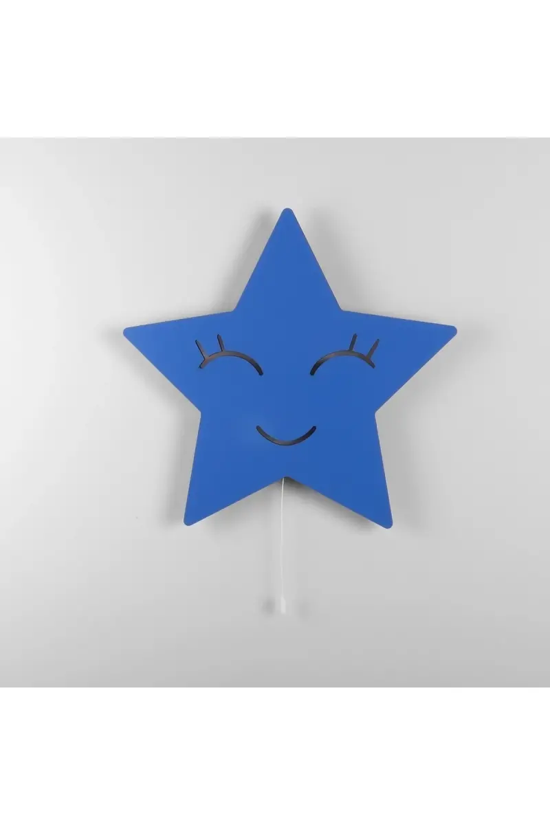 Çocuk Genç Yatak Odası Kız Erkek Bebek Duvar Dekorasyon Yıldız Aydınlatma Modelleri-GülenMavi
