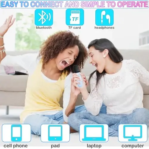 Bu karaoke makinesi, her yaştan müziksever için eğlenceli ve interaktif bir deneyim sunar. Kullanımı kolay arayüzü sayesinde herkes rahatlıkla kullanabilir. Evde, partilerde, seyahatlerde veya açık hava etkinliklerinde müzik keyfinizi katlayın. Şık tasarımı ve hediye kutusuyla sevdiklerinizi mutlu edin. Çocukların şarkı söyleme yeteneklerini geliştirirken aynı zamanda eğlenmelerini sağlar. Bluetooth özelliği sayesinde istediğiniz müzikleri kolayca çalabilir ve karaoke partinizi başlatabilirsiniz. Taşınabilir ve kablosuz tasarımı sayesinde istediğiniz her yere götürebilir ve müzik keyfinizi her zaman yanınızda taşıyabilirsiniz.