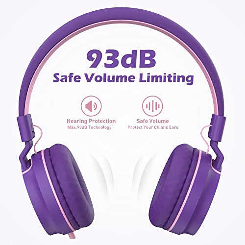 Bolalar uchun quloqchinlar, AILIHEN I35 Maktab uchun quloq usti quloqchinlar, Xavfsiz ovoz balandligi 93dB, Qiz bolalar uchun HD mikrofonli stereo quloqchin, Chromebook, noutbuk, kompyuter, planshet uchun katlanadigan simli 3,5 mm (pushti binafsha)
