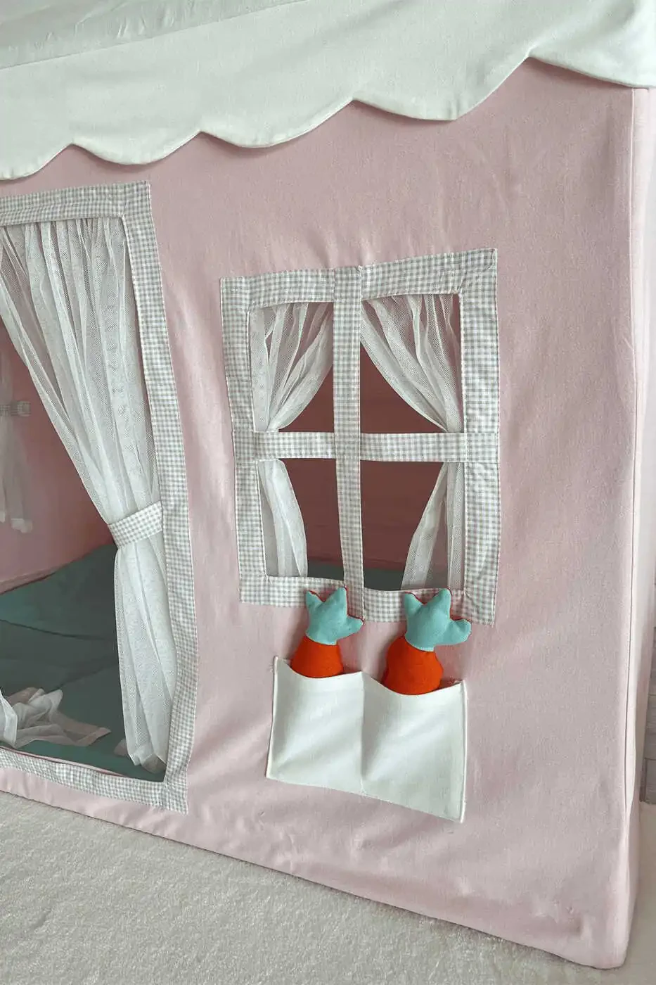 Çocuklarınızın hayal dünyasını renklendirecek, onlara güvenli ve eğlenceli bir oyun alanı sunacak olan Tavşan Desenli Oyun Çadırı ile tanışın! Bu sevimli oyun evi, çocuklarınızın yaratıcılıklarını geliştirmelerine, arkadaşlarıyla keyifli vakit geçirmelerine ve kendi özel dünyalarını yaratmalarına olanak tanır. Tavşan desenleriyle süslenmiş bu oyun çadırı, çocuk odalarının, oyun odalarının veya bahçelerin vazgeçilmez bir parçası olacak. Pastelya Kids kalitesiyle sunulan bu ürün, çocuklarınızın sağlığı ve güvenliği ön planda tutularak üretilmiştir. Ürünümüz, dayanıklı alüminyum iskelet sistemi ve %100 pamuklu kumaştan üretilmiş kılıfıyla uzun ömürlü bir kullanım sunar. Çocuklarınızın oyun oynarken rahat etmesi için özel olarak tasarlanmış taban minderi de ürün içeriğine dahildir. Bu minder, 1. kalite antibakteriyel elyaf dolgusu ve oeko-tex sertifikalı kumaşıyla hijyenik ve konforlu bir oyun deneyimi sunar. Oyun çadırımız, demonte olarak gönderilir ve kolayca kurulabilir. Alet gerektirmeyen sök-tak mantığıyla dakikalar içinde kurulumu tamamlayabilir, oyun evini dilediğiniz zaman farklı mekanlara taşıyabilirsiniz. Hafif yapısı sayesinde, oyun evinizi kolayca odadan odaya, hatta parka veya bahçeye taşıyabilirsiniz. Bu sayede çocuklarınız her zaman ve her yerde kendi oyun alanlarına sahip olabilirler. Oyun çadırımız, sadece eğlenceli bir oyun alanı değil, aynı zamanda çocuklarınızın gelişimine de katkıda bulunur. Yaratıcılıklarını kullanmalarını, problem çözme becerilerini geliştirmelerini ve sosyal etkileşimlerini artırmalarını destekler. Tavşan desenli tasarımıyla çocukların hayal gücünü harekete geçirir ve onlara kendi masallarını yaratma fırsatı sunar. Oyun çadırımız, tüm güvenlik standartlarına uygun olarak üretilmiştir. Sağlığa zararlı hiçbir madde içermez ve çocuklarınızın güvenliği için gerekli tüm önlemler alınmıştır. Bu sayede, çocuklarınızın gönül rahatlığıyla oyun oynamasını sağlayabilirsiniz. Ürünümüz, şık taşıma kılıfı ile birlikte gelir. Bu kılıf sayesinde oyun çadırınızı kolayca saklayabilir ve istediğiniz yere taşıyabilirsiniz. Oyun çadırımız, çocuklarınız için unutulmaz bir hediye seçeneği olacaktır. Onlara kendi özel dünyalarını yaratma ve hayallerini gerçekleştirme fırsatı sunar. Bu eğlenceli ve eğitici oyun alanı, çocuklarınızın gelişimine katkıda bulunurken aynı zamanda onlara keyifli ve mutlu anılar biriktirme imkanı sunar. Tavşan Desenli Oyun Çadırı ile çocuklarınızın oyun zamanlarını daha eğlenceli ve anlamlı hale getirin!