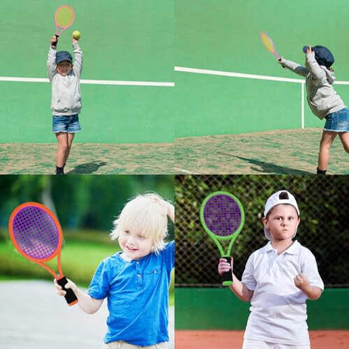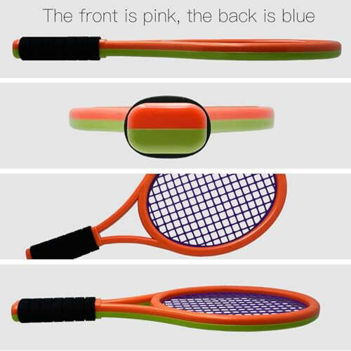 Product Include: 2 Rackets,3 Soft Balls, 1 Tennis ball and 2 badminton balls, It can be used as a tennis racket or a badminton racket to increase children's interest in sports. Sponge Wrapped Grip: The handle of the racket is wrapped in sponge, so that the fit for children is more comfortable. 17 Inches Racquet: The racket length is 17 inches, just fit the distance from the child’s wrist to ankle, So they won’t hit the ground. Lightweight: The weight of the racket is only 142g/0.31lb. Most children have little strength and cannot hold an adult racket, so this racket is just suitable for children. Stability&Durable:The racket is made of plastic, but its design principle is the same as that of an adult racket. Don't worry about the racket being easily damaged.