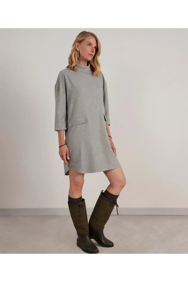 This dress features a graceful collar detail for a sophisticated look. Its fitted cut perfectly accentuates your figure. Made from soft and breathable fabric, it offers comfortable wear throughout the day.