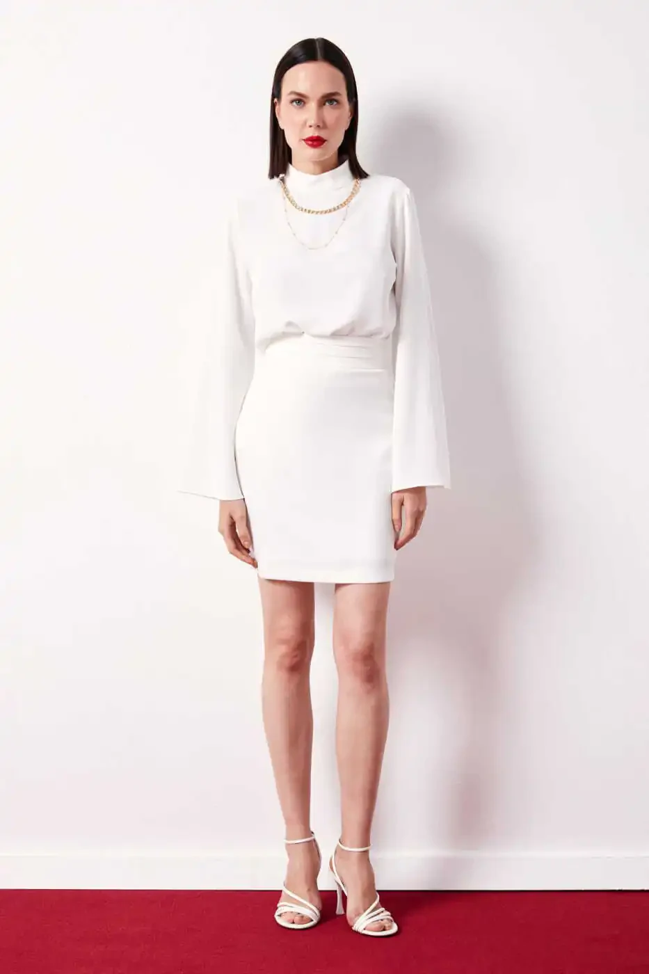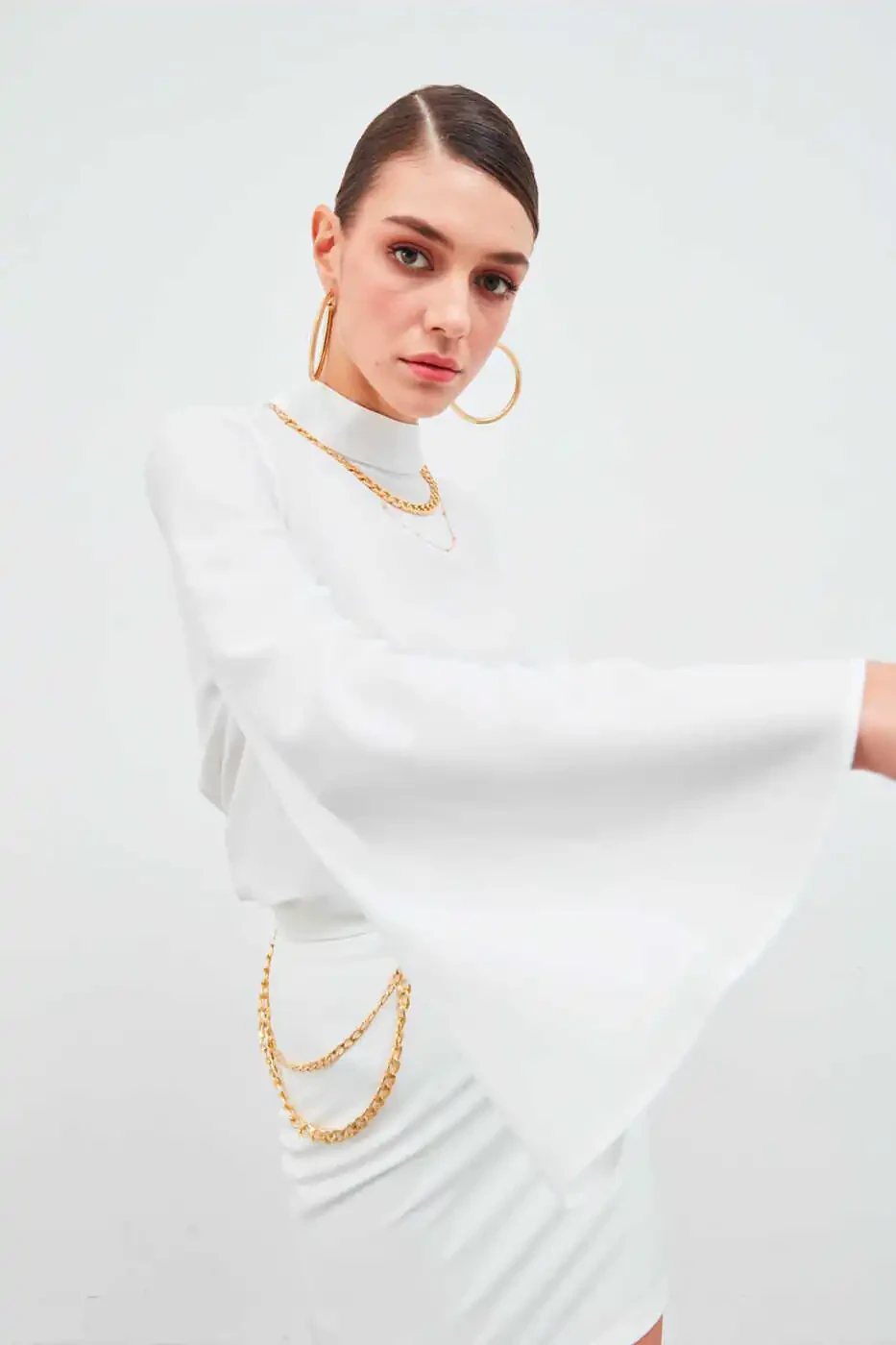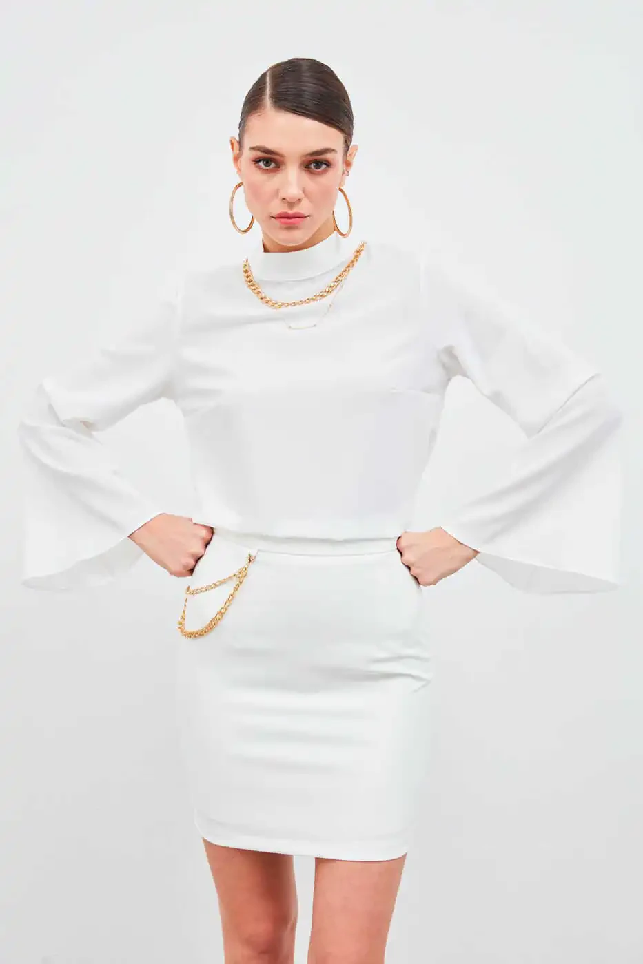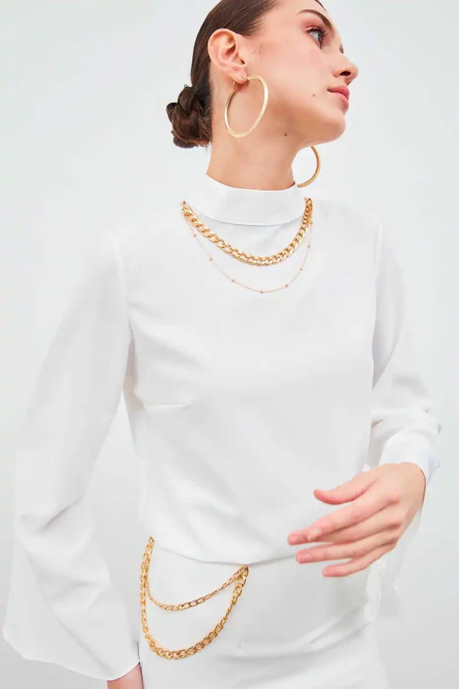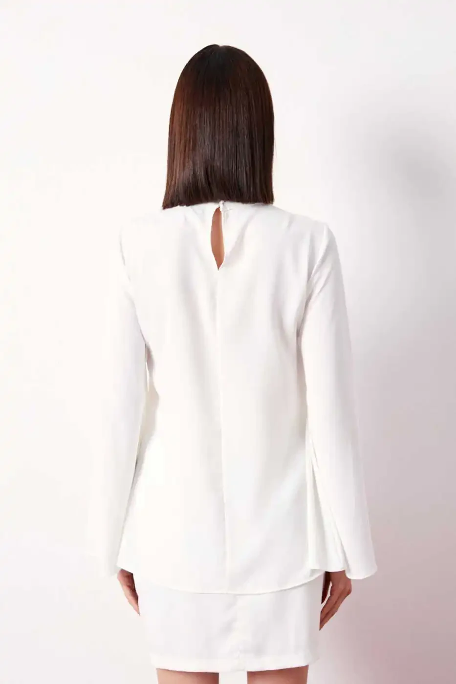 A perfect choice for a graceful and elegant look, the Collared Spanish Sleeve Blouse - Ecru will be an indispensable part of your wardrobe. This blouse, which you can wear comfortably even in the summer heat with its comfortable and breathable fabric, will complete your style on special occasions.