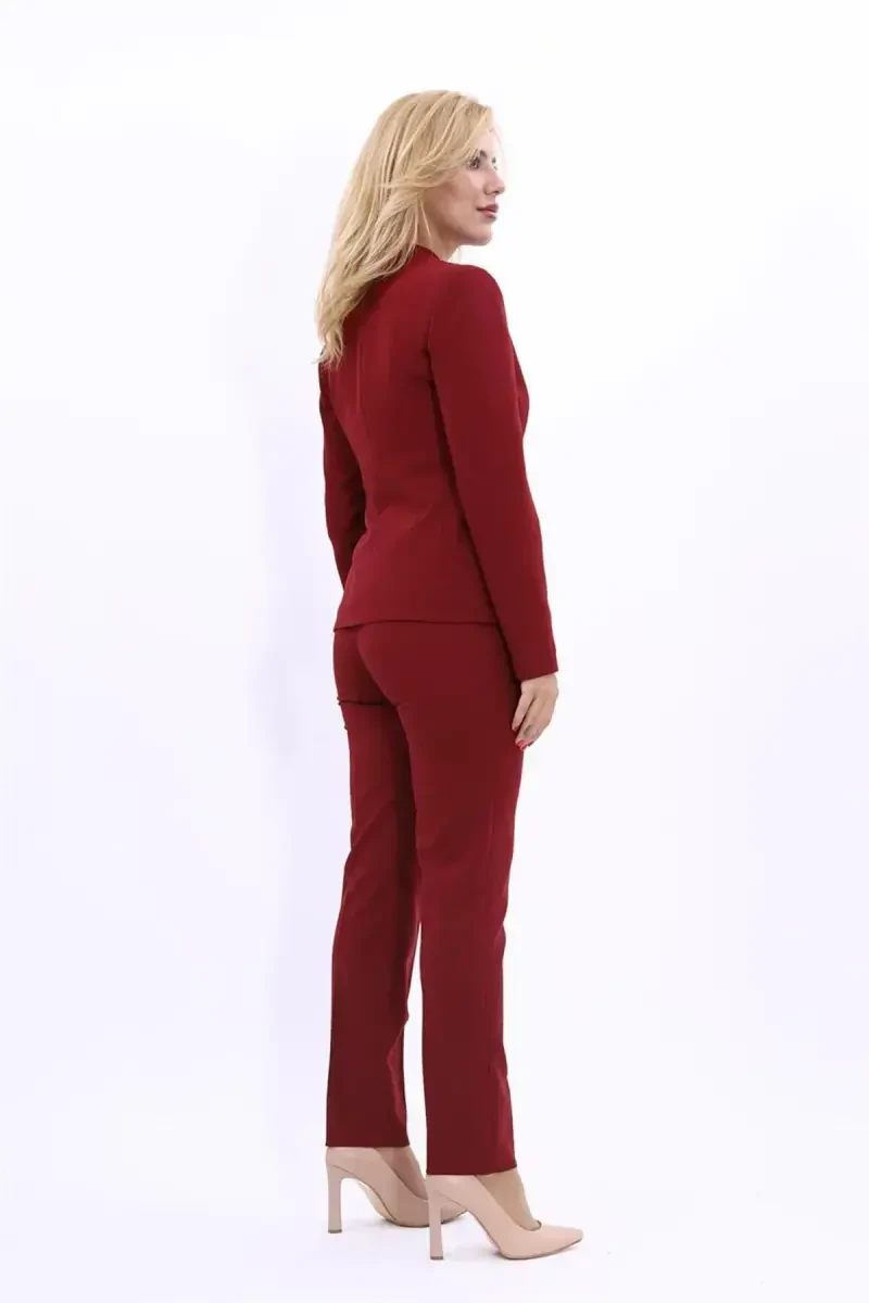 Elegant and Stylish Look: Collarless Single Button Blazer & Cigarette Pants Suit - Burgundy