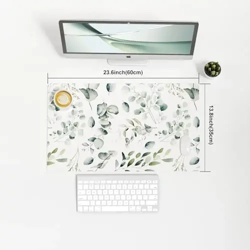 Colorful Star Large Mouse Pad, PU Leather Waterproof Desk Mat, Computer Gaming Mouse Pad, XXL Full Table Mousepad Non Slip Desk Pad for School Office Home 23.6" x 13.8" - Fresh Eucalyptus Leaves