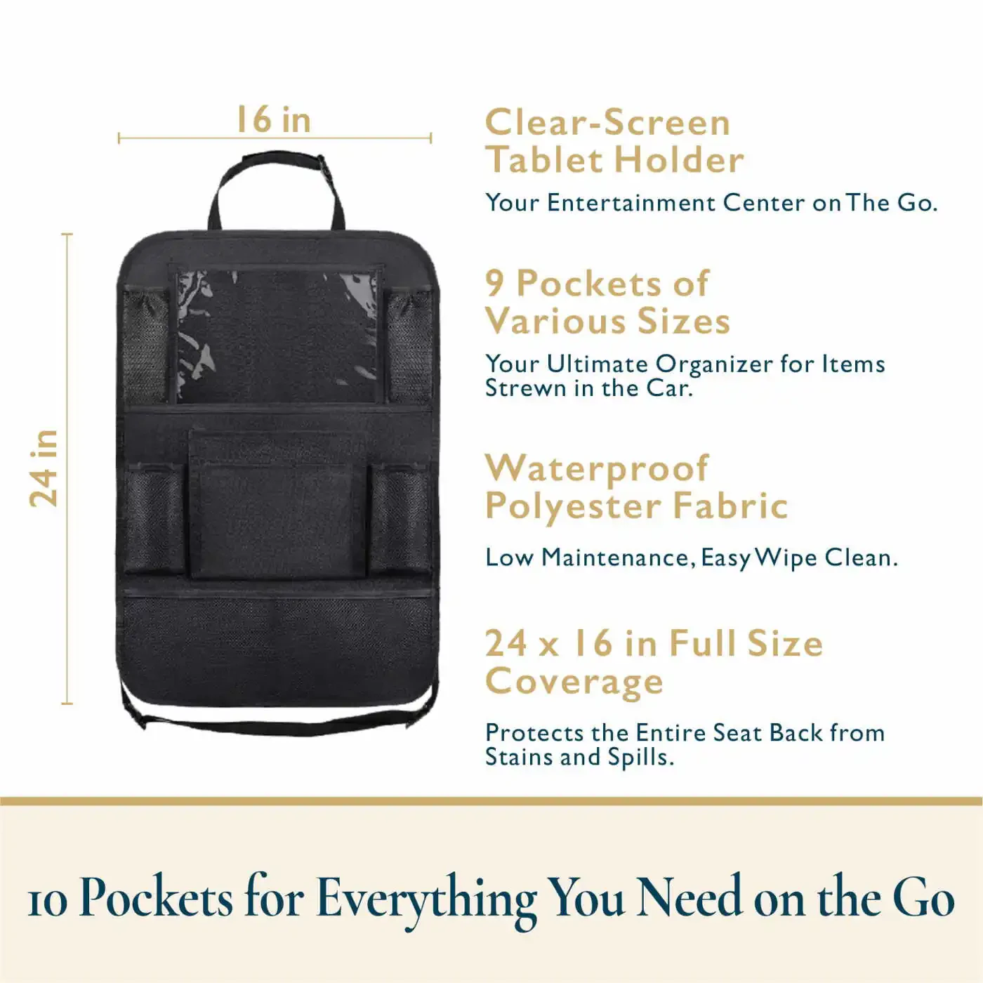 Разработанный для того, чтобы сделать ваши поездки более приятными и организованными как для вас, так и для ваших детей, органайзер для задних сидений ComfiTime 2Pack добавит новый уровень комфорта вашим автомобильным путешествиям. Он поможет вашим детям аккуратно хранить игры, игрушки, закуски и другие вещи, устраняя беспорядок в салоне автомобиля. Больше никакого стресса из-за потерянных вещей под сиденьями или беспорядка – вы создадите спокойную атмосферу на протяжении всей поездки. Этот практичный органайзер с множеством карманов различных размеров и форм позволяет аккуратно хранить все, от бутылок с водой до планшетов. Благодаря водонепроницаемой и машинной стирке он устойчив к разливам и загрязнениям. Он надежно крепится к спинкам большинства сидений автомобиля, обеспечивая безопасное и стабильное использование. Прозрачный карман для техники позволяет легко видеть ваш планшет. Изготовленный из прочной нейлоновой ткани 600 denier, ComfiTime – это превосходный вариант для длительного использования. Упаковка содержит два органайзера, что идеально подходит для семей с двумя детьми. Займите ваших детей на протяжении всей поездки, сделав путешествие приятнее как для вас, так и для них. Теперь длительные поездки не пугают, а наполнены веселыми воспоминаниями. Более организованная обстановка в автомобиле означает меньше стресса и больше семейного счастья. С ComfiTime ваши поездки станут беспроблемными и спокойными.