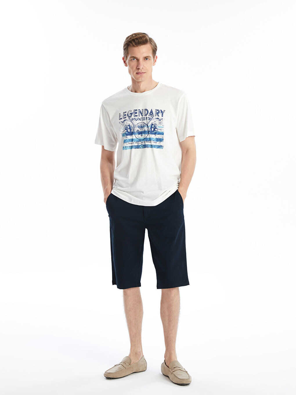 Relaxed fit. Regular waist. Above the knee. With pockets. 100% cotton.