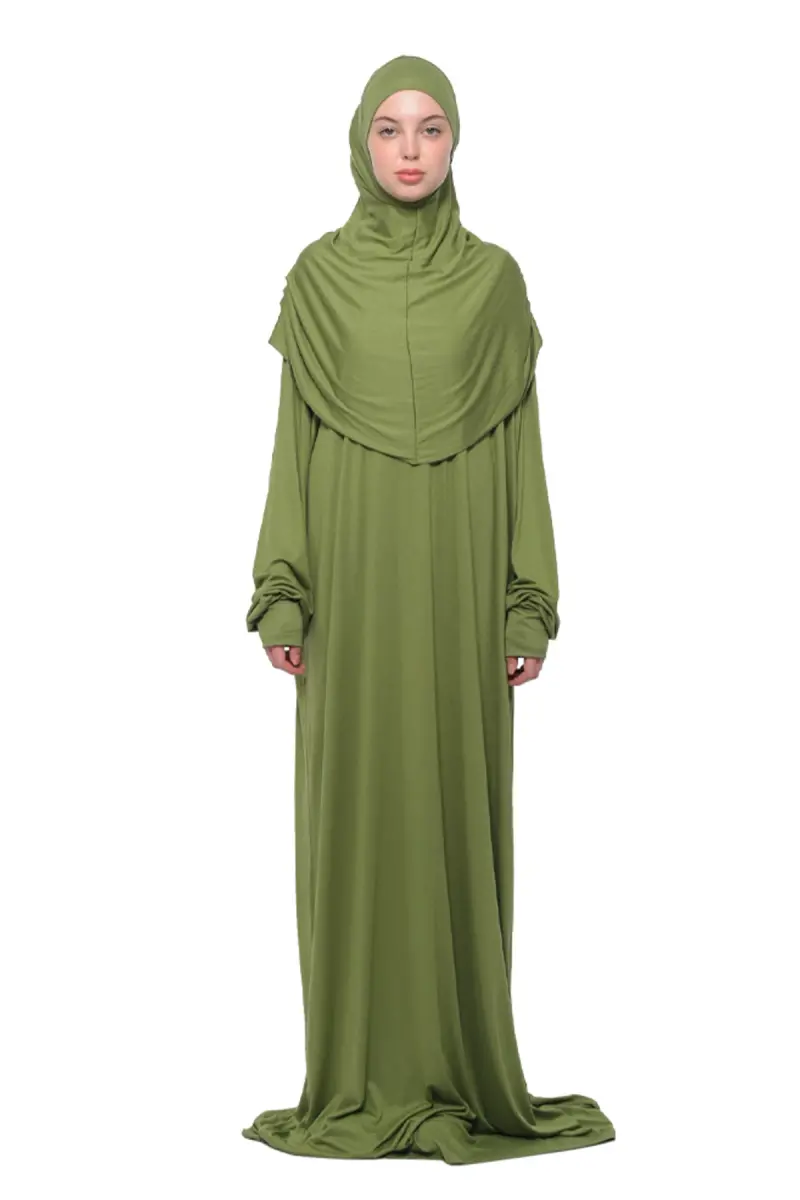 Designed for you to perform your prayers with peace and comfort, this special dress is made from 100% organic cotton. Its breathable fabric that allows your skin to breathe and is gentle on your delicate skin makes your moments of worship more enjoyable. Its simple and elegant design will blend in any environment. You can easily put on and take off thanks to its one-piece design, and use your time more efficiently. The batwing sleeve structure provides freedom of movement; you will not feel any restriction during worship. You can also use it without a headscarf thanks to its removable headscarf feature. Its pistachio green color evokes a sense of freshness and tranquility. This prayer dress, which you can use comfortably at any time of the day, in every season, makes your prayers more peaceful and enjoyable. You can fulfill your prayers with peace of mind with this dress, which will be indispensable for your prayer times.