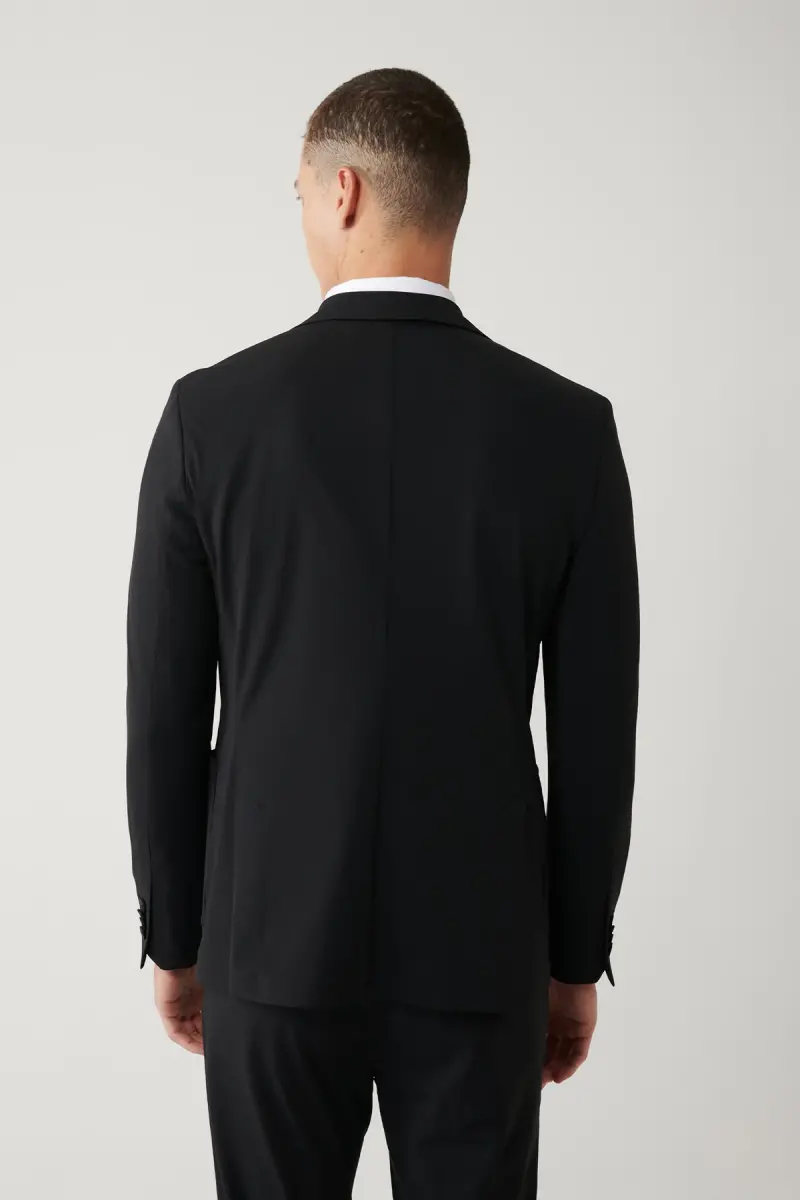Mono collar, Fake pocket, Unlined, Double vent, Water repellent, Bi Stretch, 60 degree stretchable fabric, Comfort Slim Fit Jacket